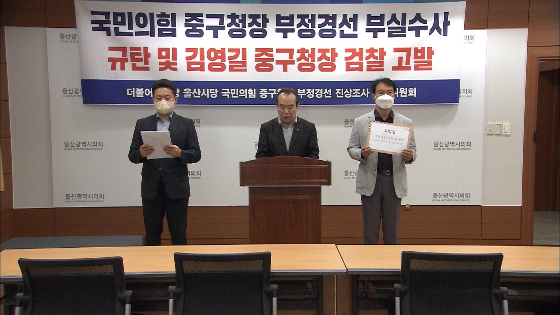더불어민주당 울산시당은 오늘(9/8) 국민의힘 중구청장 경선 과정에서 허위 당원 100여 명을 전입시킨 혐의로 김영길 중구청장 등 관련자 5명을 검찰에 고발했습니다. 더불어민주당은 최근 경찰조사에서 김 청장이 아닌 선거캠프 관계자 2명이 기소의견으로 검찰에 송치됐다며 이는 전형적인 꼬리자르기식 수사라고 주장했...