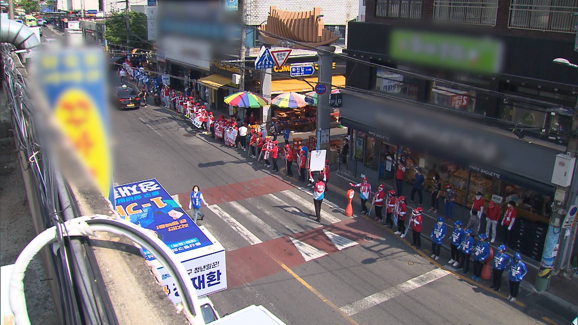 ◀앵커▶ 지방선거가 일주일(6일) 앞으로 다가오면서 5개 구군 모두 유세 열기가 뜨겁습니다. 현역 구청장과 전 기초의회 의장이 격돌하고 있는 정치 1번지, 중구청장 유세 현장을 최지호 기자가 다녀왔습니다. ◀리포트▶ 5일장이 열린 전통시장. 더불어민주당과 국민의힘이 유세 차량을 나란히 세워놓고 열띤 유세전을 펼치고...