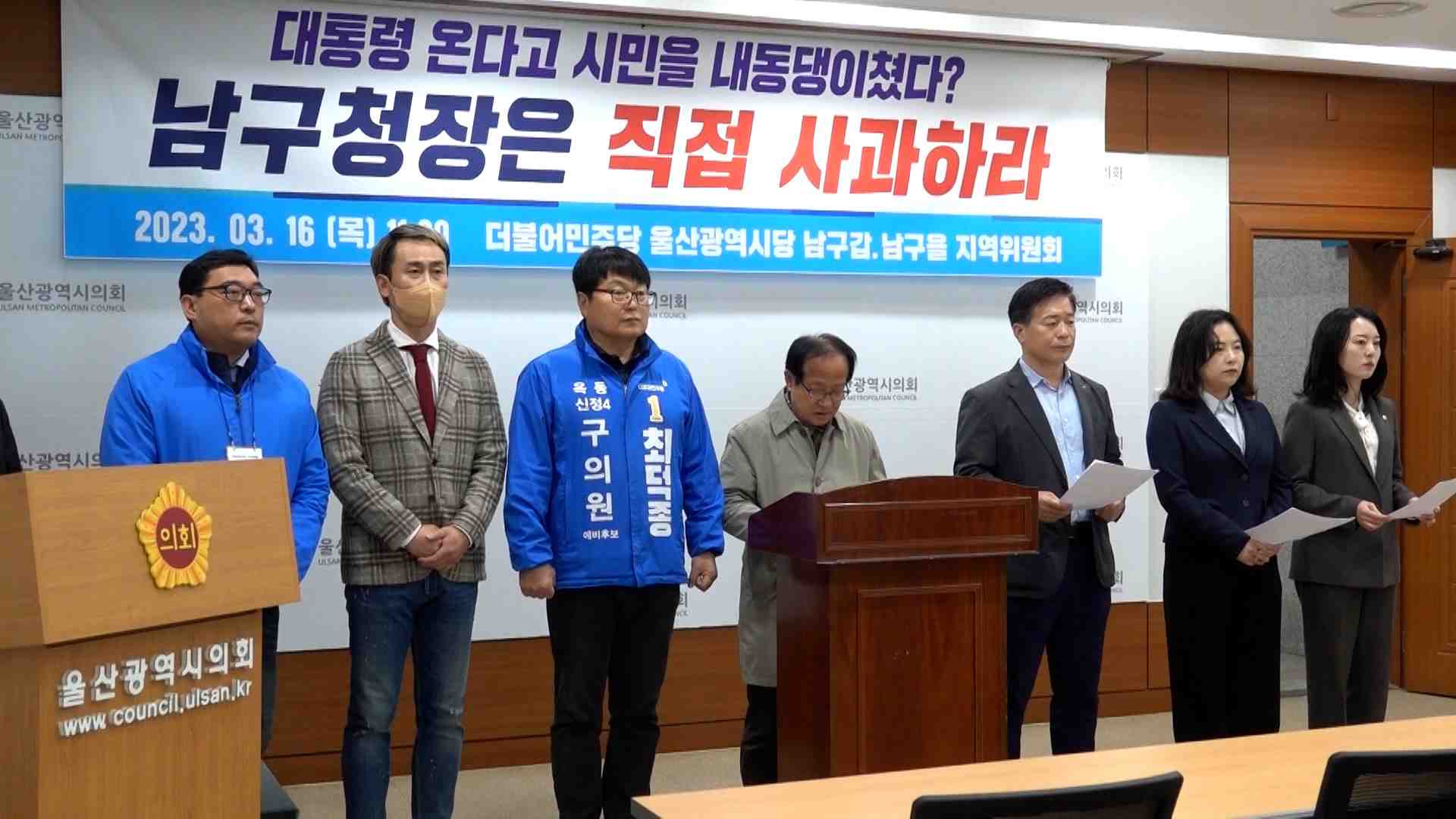 더불어민주당 울산시당은 오늘(3/16) 기자회견을 열고 남구청은 신정시장 노점상 상인을 과잉 단속한 책임을 지고 사과하라고 주장했습니다. 민주당은 사건이 일어난 지난 8일은 윤석열 대통령의 신정시장 방문이 예정된 하루 전이어서 보여주기식 단속에 불과했다며, 남구청장은 피해자와 피해자 가족, 시민에게 진심으로 ...