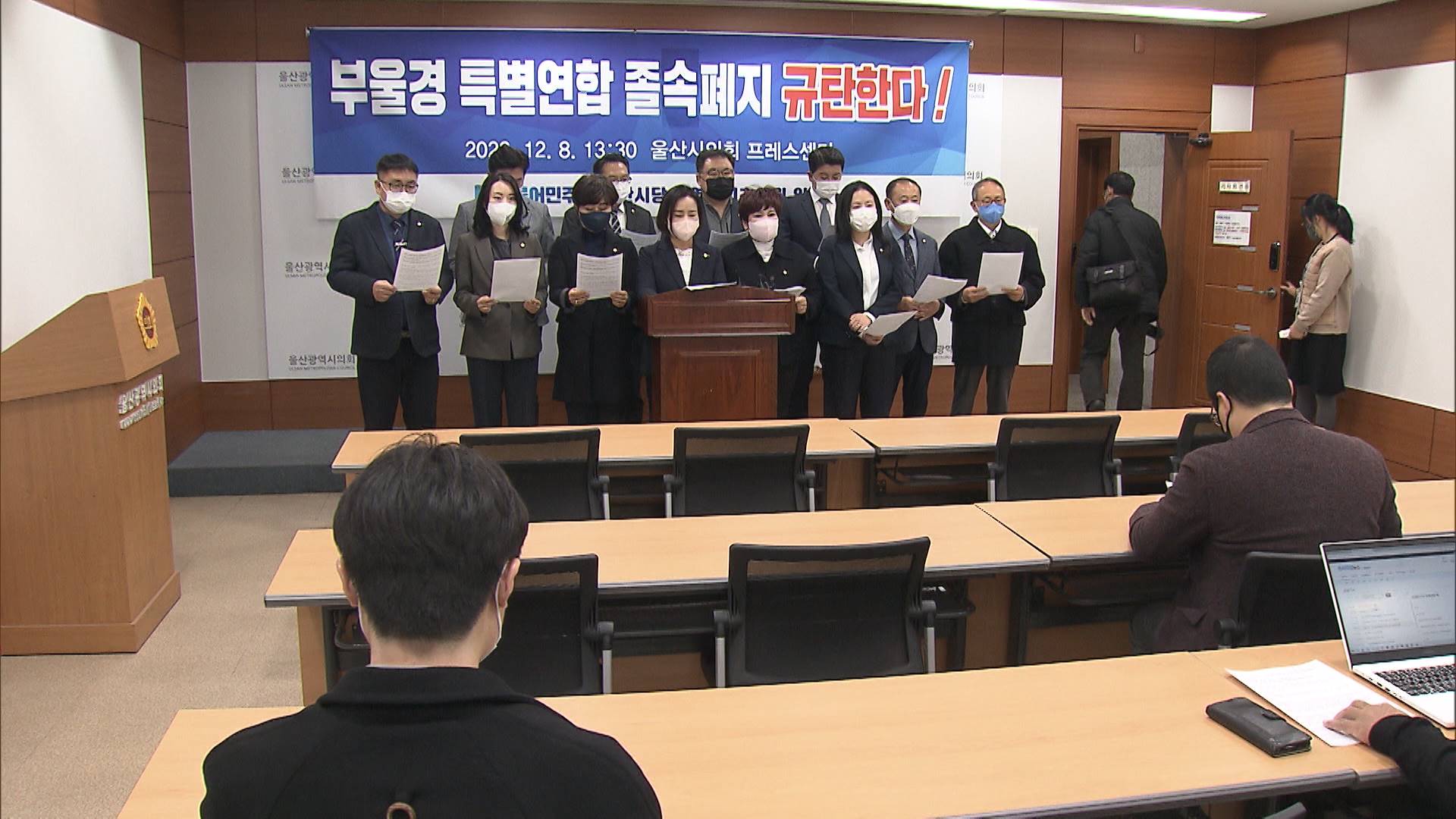 더불어민주당 부울경 선출직 시·군·구 의원들은 오늘(12/8) 시의회 프레스센터에서 기자회견을 열고 부울경 특별연합 규약 폐지 절차를 중단하라고 주장했습니다. 의원들은 부울경 단체장들이 전국 최초의 메가시티 구현을 눈앞에 두고 행정 독주와 구태 정치로 특별연합을 탈퇴한 것이라고 강조했습니다. 부울경 3개 도시 ...