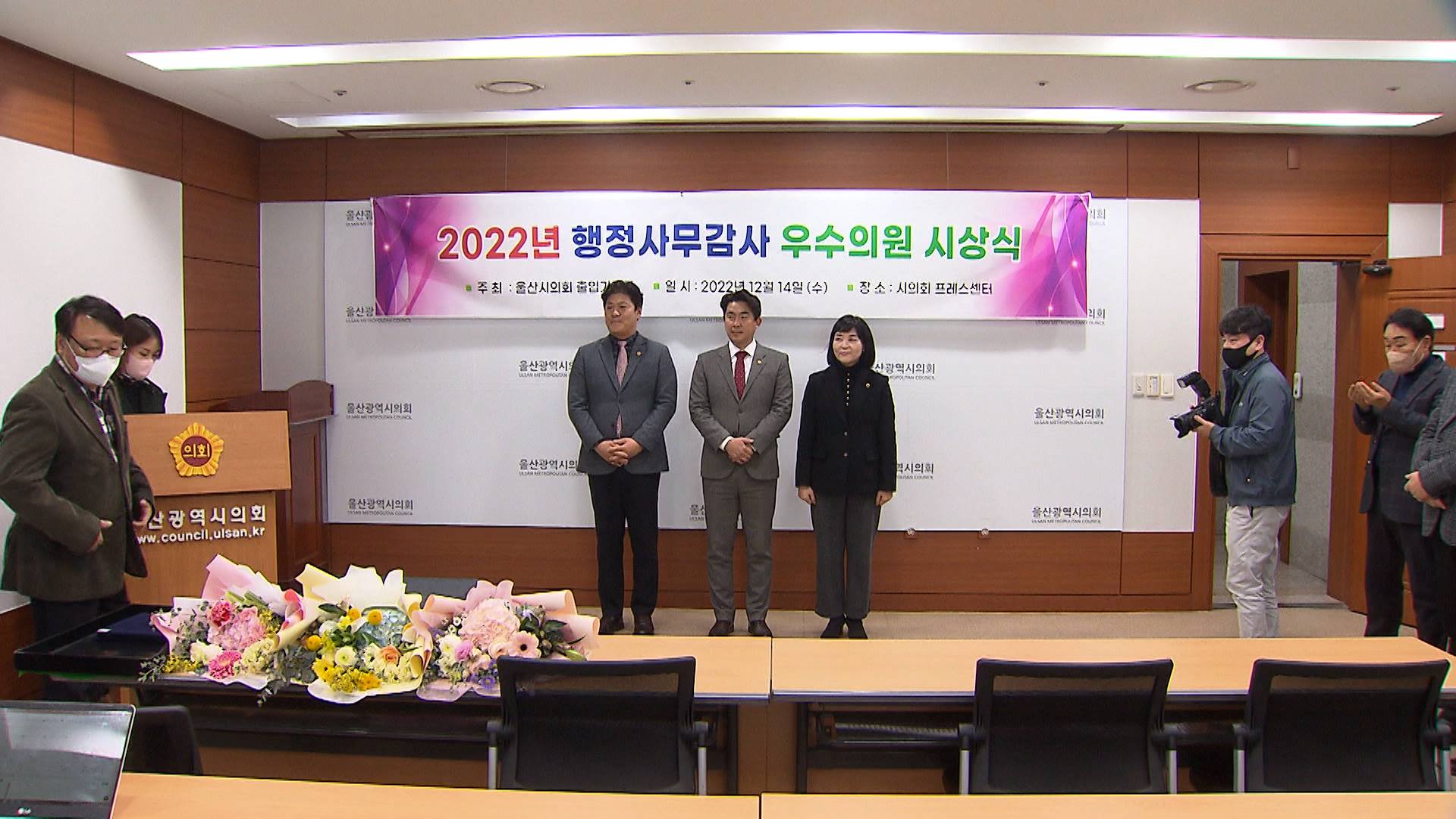울산시의회 공진혁, 김종훈, 천미경 의원이 올해 행정사무감사 우수의원으로 선정됐습니다. 시의회 출입기자단은 투표를 통해 행감 자료를 심도 있게 분석하고 날카로운 시각으로 집행부를 견제한 시의원 3명을 뽑았습니다. 우수의원들은 울산시민의 삶의 질을 높이는 의정활동에 최선을 다하겠다고 소감을 밝혔습니다.
