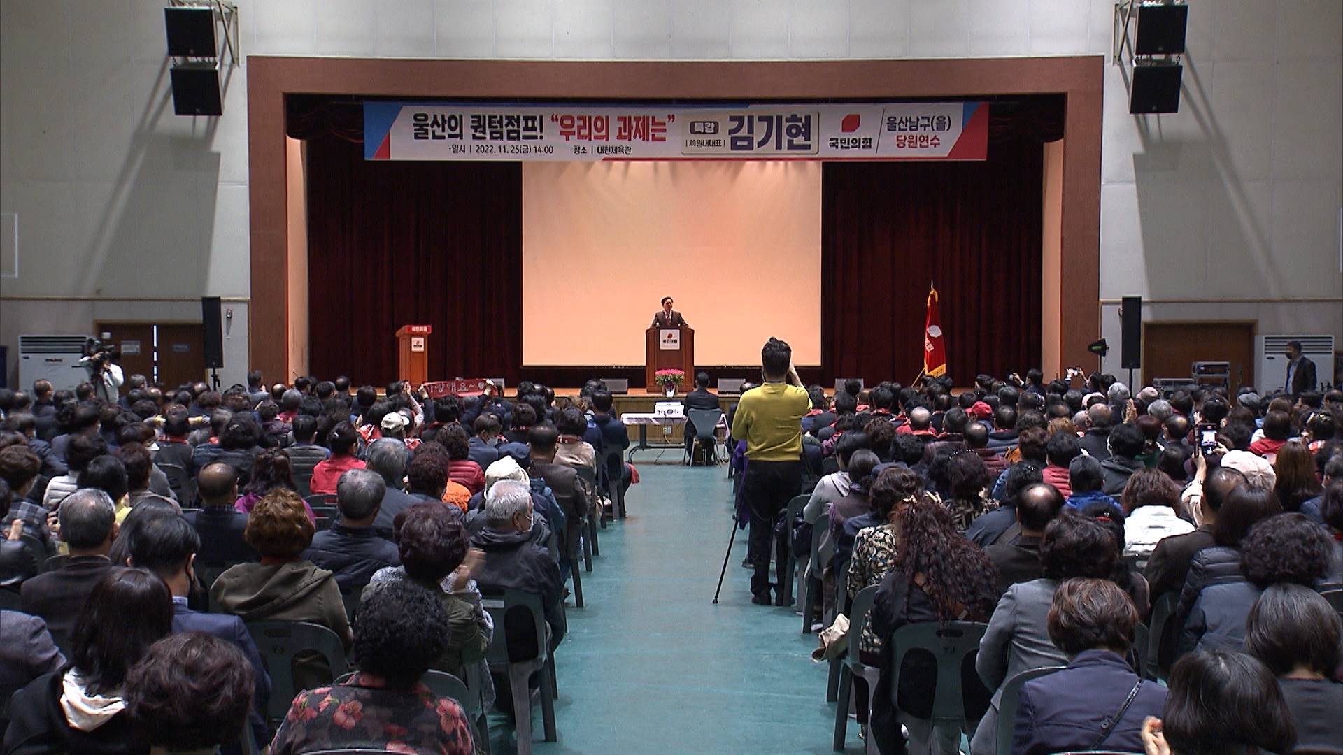 당대표 도전에 나선 국민의힘 김기현 의원이 오늘(11/25) 남구 대현체육관에서 당원교육을 겸한 특강에 나섰습니다. 김 의원은 이 자리에서 지역 출신의 큰 인물이 중앙 정치권에 포진해 울산 발전을 이끌어야 한다고 강조했습니다. 일찌감치 당권 도전을 선언한 김 의원은 당원 투표에서 유리한 고지를 차지하기위해 영남...