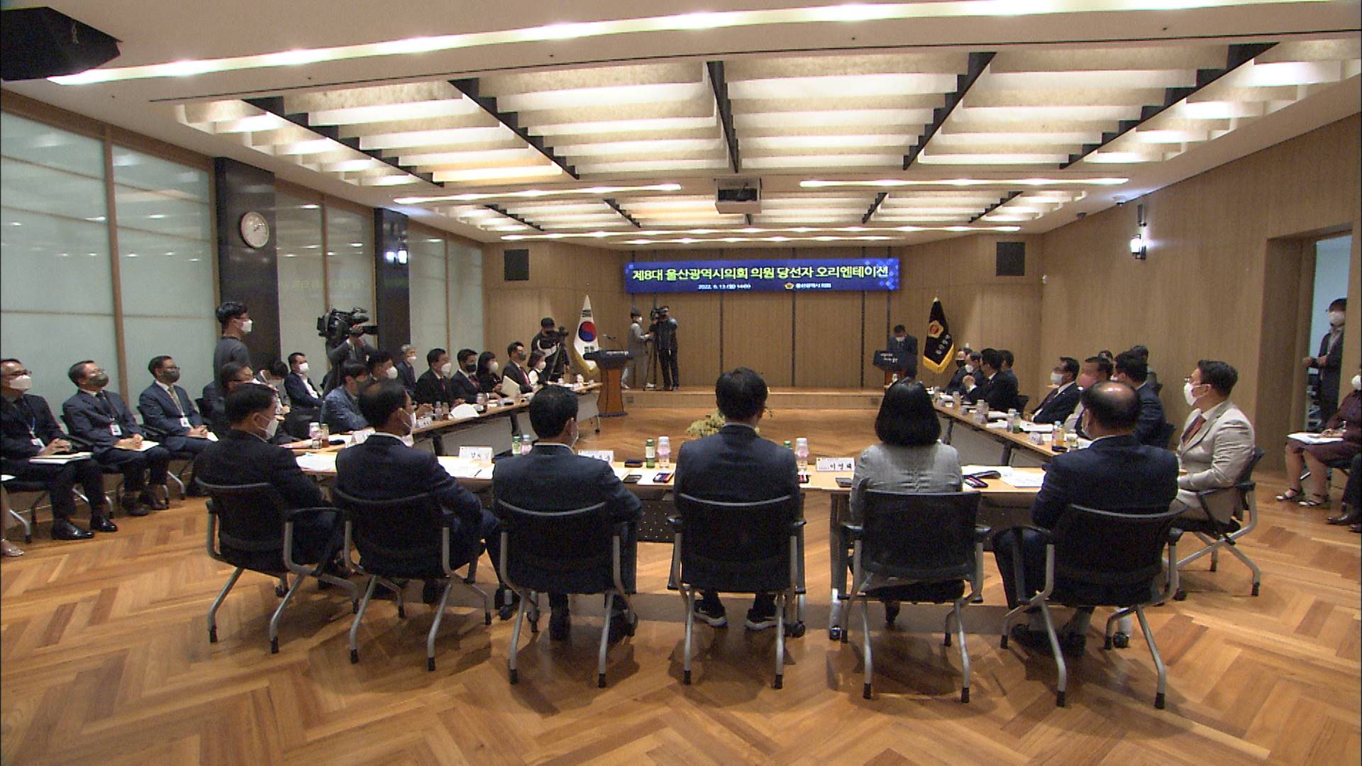 울산시의회가 오늘(6/13) 6.1 지방선거에서 당선된 22명의 시의원을 대상으로 오리엔테이션을 엽니다. 시의회 사무처는 의정활동에 수반되는 정책과 조례안 제정 등에 필요한 지원사항 전반을 소개하고, 재산과 병역, 겸직 등 의원 등록에 필요한 절차도 상세히 안내할 계획입니다. 민선 8기 시의회 개원식은 다음 달 8일로...