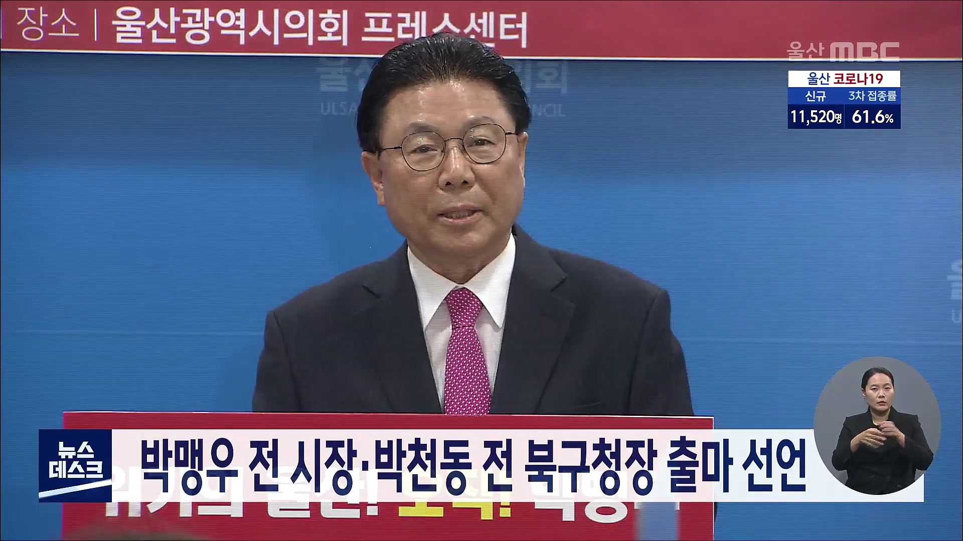 박맹우 전 울산시장이 오늘(3/16) 위기의 울산을 구해내겠다며 국민의힘 소속으로 울산시장 출마를 선언했습니다. 박 전 시장은 민선 3~5기 울산시정을 이끌었던 행정 경험과 19~20대 국회를 거치며 쌓은 풍부한 정치 경험을 토대로 장기 침체에 빠진 울산을 되살려내기 위한 마지막 봉사를 하고 싶다고 포부를 밝혔습니다.