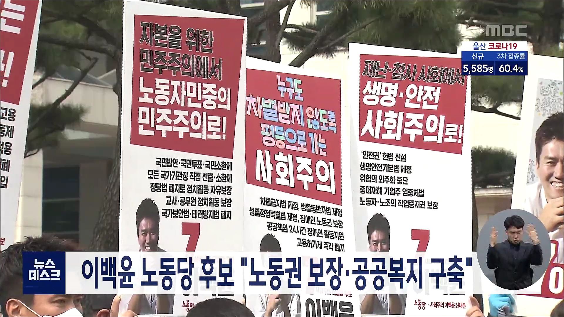 노동당 이백윤 대선 후보가 오늘(3/4) 울산을 찾아 한국사회를 바로잡는 체제전환을 위해 기호 7번을 뽑아달라고 호소했습니다. 이 후보는 자신이 대통령이 되면 국가책임일자리로 완전고용 실현, 공공의료와 공공교통 복지서비스 등 사회주의 정책을 실현하겠다고 말했습니다.