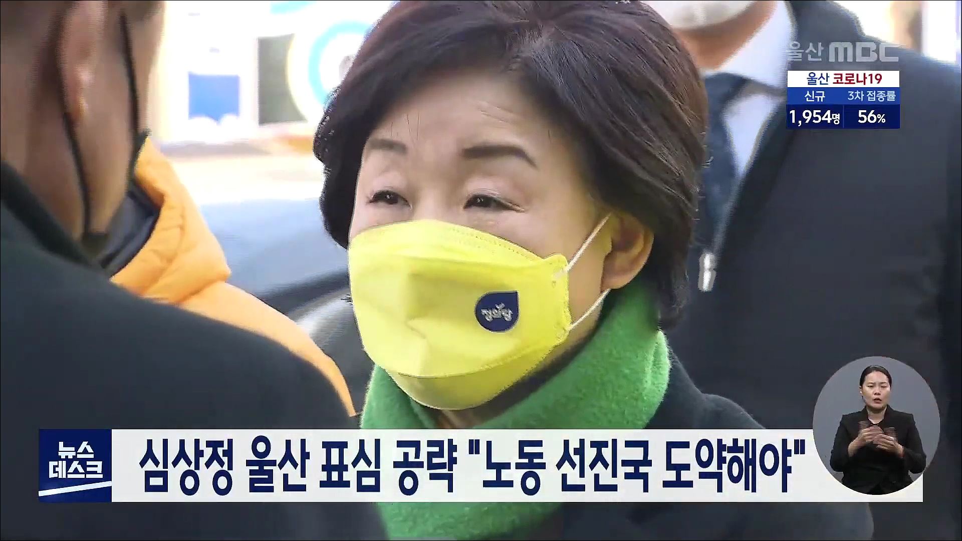 공식 선거운동 3일째인 오늘(2/17) 심상정 정의당 대선 후보가 울산을 찾아 노동자 표심 공략에 나섰습니다. 심 후보는 이번 대선은 '노동 없는 대선'이라며 노동이 당당한 선진국으로 도약하는 선거로 만들어 달라고 호소했습니다. 심 후보는 또, 현대중공업을 찾아 조선업종 노조연대와 조선소 일자리 정규직 확대 등을 ...