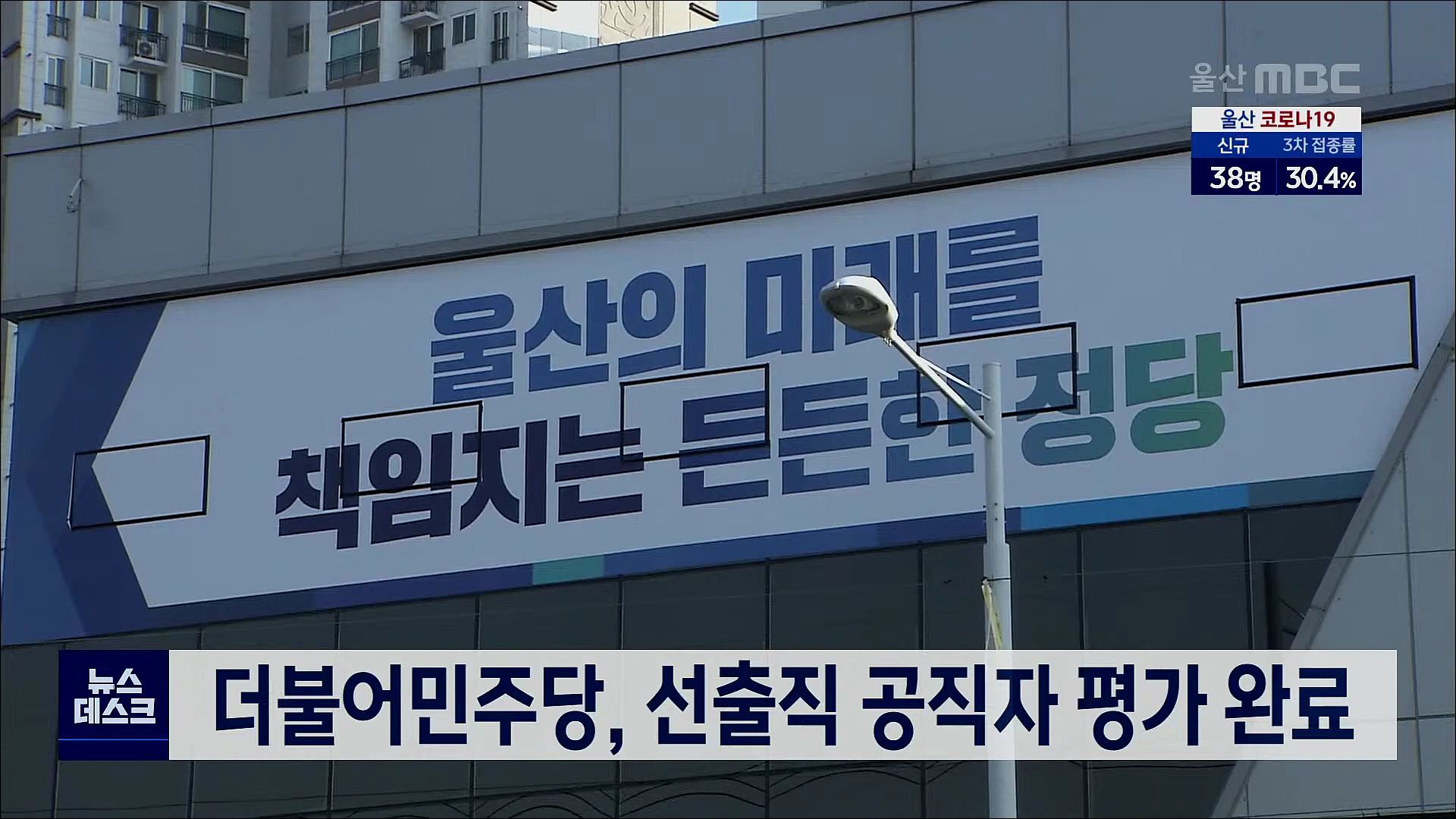 내년 6.1 지방선거에 나서는 더불어민주당 소속 현역 단체장과 광역, 기초의원들에 대한 선출직 공직자 평가위원회 심사가 마무리 됐습니다. 민주당 울산시당은 선출직 공직자 평가위원회가 울산지역 기초단체장 4명과 울산시의회 의원 17명, 구·군의회 의원 24명의 평가를 완료했다고 밝혔습니다. 평가항목은 공약 이행평...