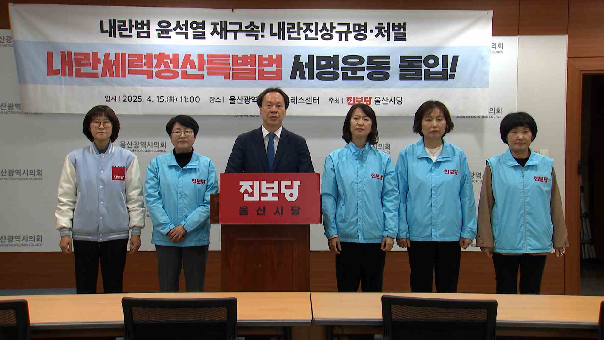 진보당 울산시당은 오늘(4/15) 기자회견을 열고 내란 세력을 완전히 뿌리 뽑기 위해서는 특별법 제정이 필요하다고 밝혔습니다. 진보당은 헌법재판소가 만장일치로 윤석열 전 대통령을 파면했지만 단 한마디 사과 없이 영웅 행세를 계속하고 있다며, 내란 세력 청산의 시급성을 알리고 특별법 제정을 촉구하는 범시민 서명...