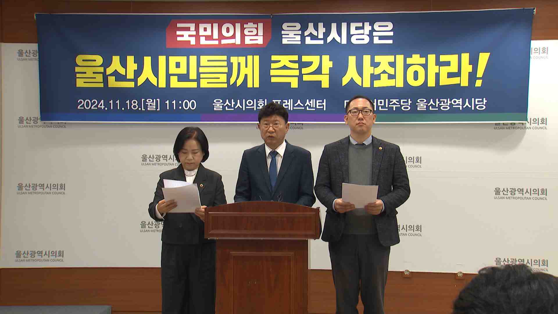 더불어민주당 울산시당은 오늘(11/18) 기자회견을 열고 울산시의회 의장 선거 무산과 관련해 국민의힘의 사과를 요구했습니다. 민주당은 지역 국회의원 중재로 김기환, 이성룡 두 후보가 사퇴한 것은 시의회가 유력 정치인의 영향력에 좌우되는 것이라고 주장했습니다. 또 의장 선거 연기로 이성룡 전 의장이 임명한 수행비...