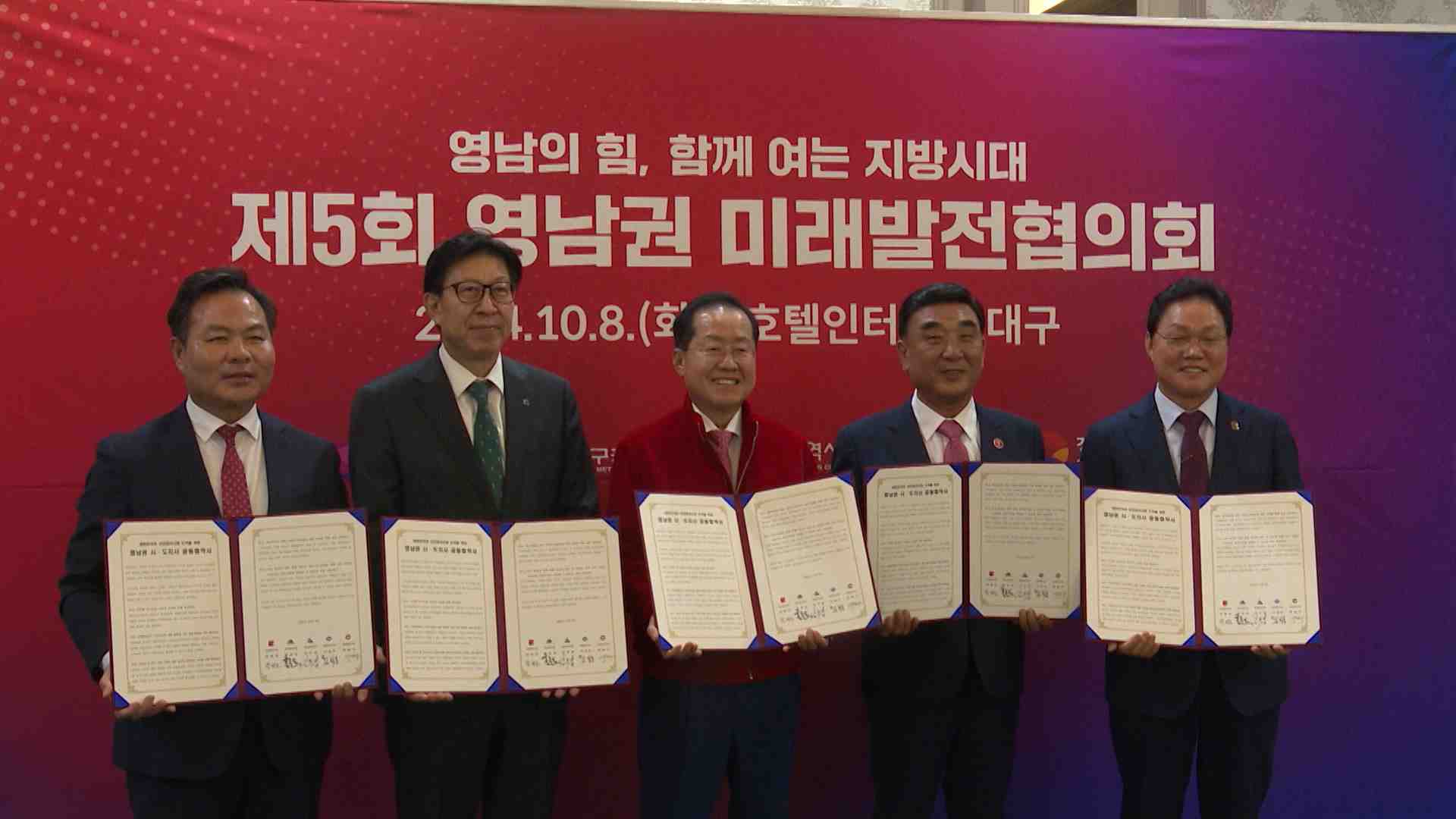 수도권 집중에 대응하기 위한 지역의 협력이 활발하게 이뤄지고 있는 가운데 영남권 5개 시·도지사가 공동협약을 체결했습니다. 울산시를 비롯한 영남권 시도지사들은 오늘(10/8) 미래발전협의회를 열고 지역 불균형 해소를 위한 지역별 전기요금 차등제 도입 등 5가지 안건에 협력해 나가기로 했습니다. 이번 협의회에서 ...
