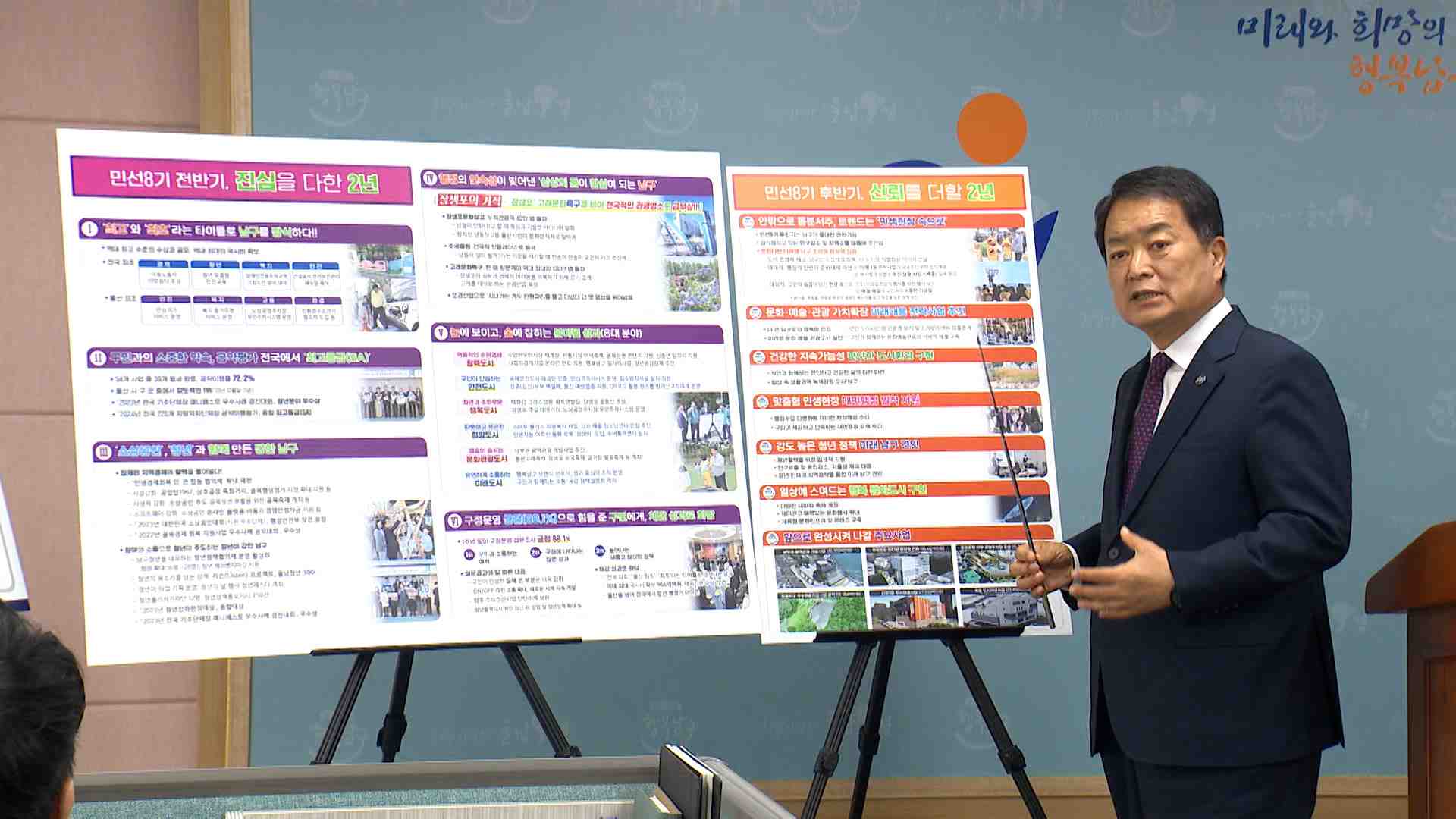 서동욱 울산 남구청장이 오늘(6/20) 취임 2주년 기자회견을 열고 지난 2년 동안의 구정 운영 성과와 앞으로의 운영 계획을 밝혔습니다. 서 구청장은 코로나19로 침체된 지역경제 회복을 위한 특화 정책과 함께 고래와 수국 축제 등을 통해 문화도시를 만들었다고 설명했습니다. 남은 임기에는 장생포를 중심으로 한 관광 산...