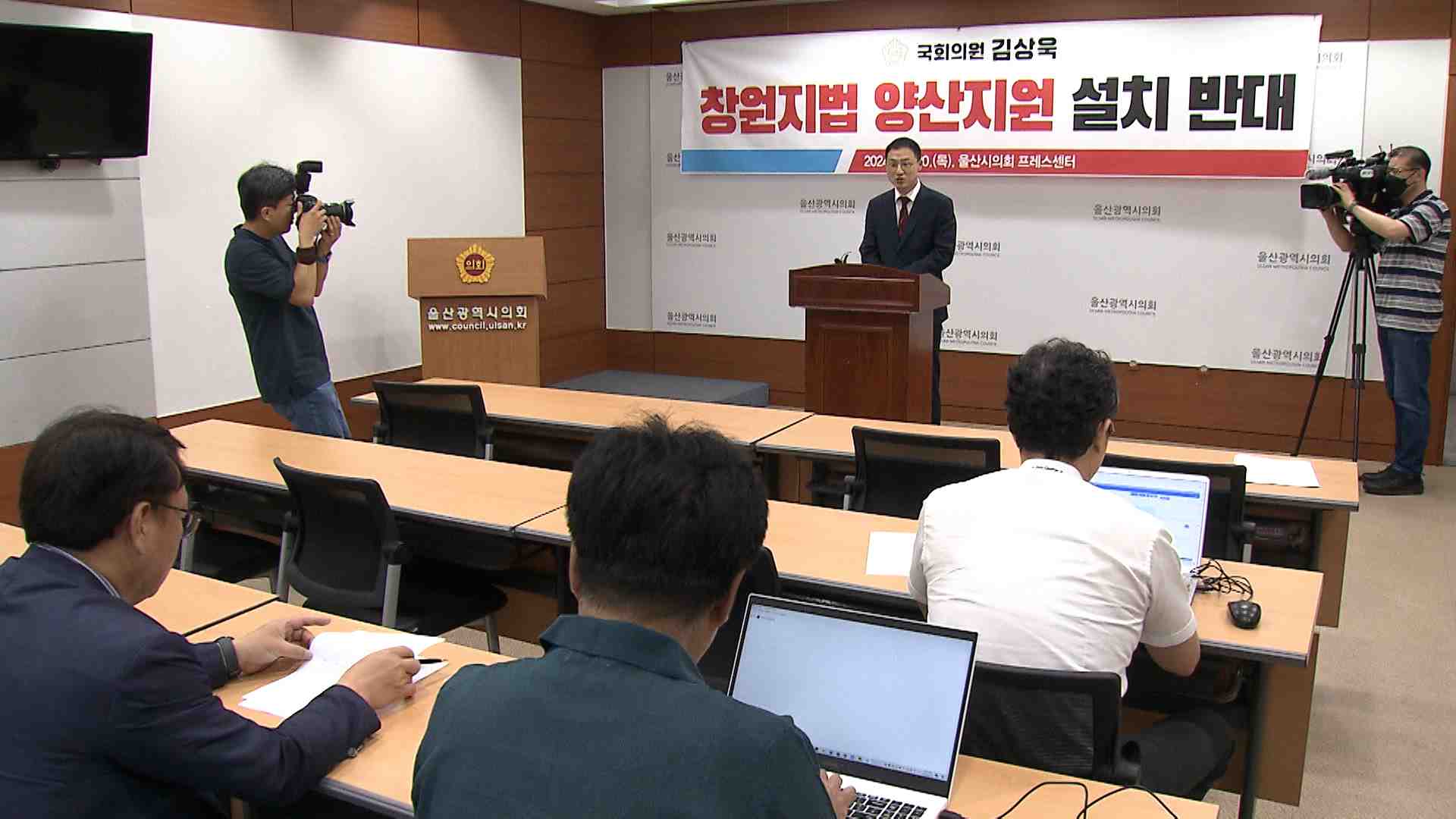 국민의힘 김상욱 의원이 오늘(6/20) 기자회견을 열고 창원지방법원 양산지원 논의를 울산지역 국회의원 전원 합의로 반대한다고 밝혔습니다. 김 의원은 양산시 담당 법원의 창원지법 변경은 효율적이지도 않고 양산시민 법률서비스 개선에도 도움이 되지 않는다고 강조했습니다. 또 양산이 경남에 속해 있지만 경제적·지리...