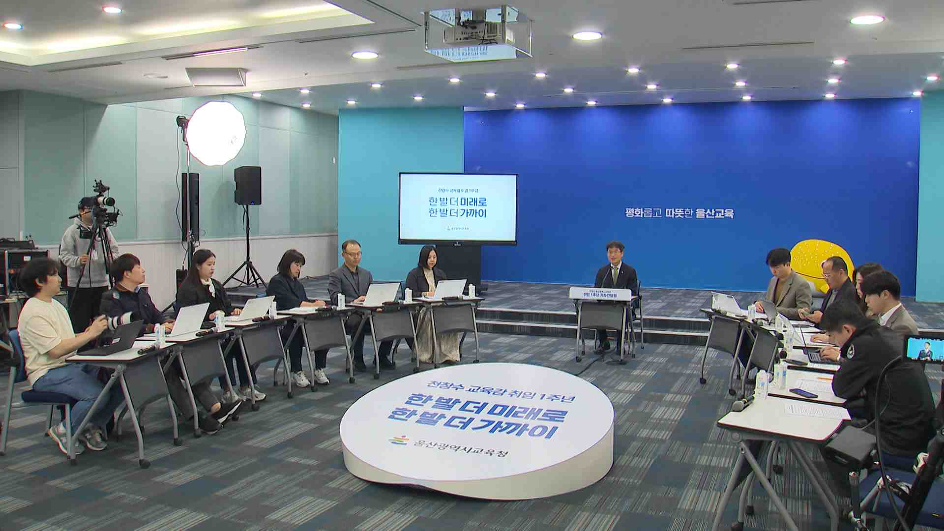 천창수 울산교육감은 오늘(4/4) 취임 1주년을 맞아 기자회견을 갖고 오는 2학기 늘봄학교 전면 시행을 차질없이 준비하고 있다고 밝혔습니다. 천 교육감은 울산지역 늘봄 참여율이 20%로, 서울 다음으로 낮다는 지적에 대해 강사와 늘봄실무사, 교실부족 등에 대한 대책을 세우고 있다고 답했습니다. 또 지난 2월 교육발전...