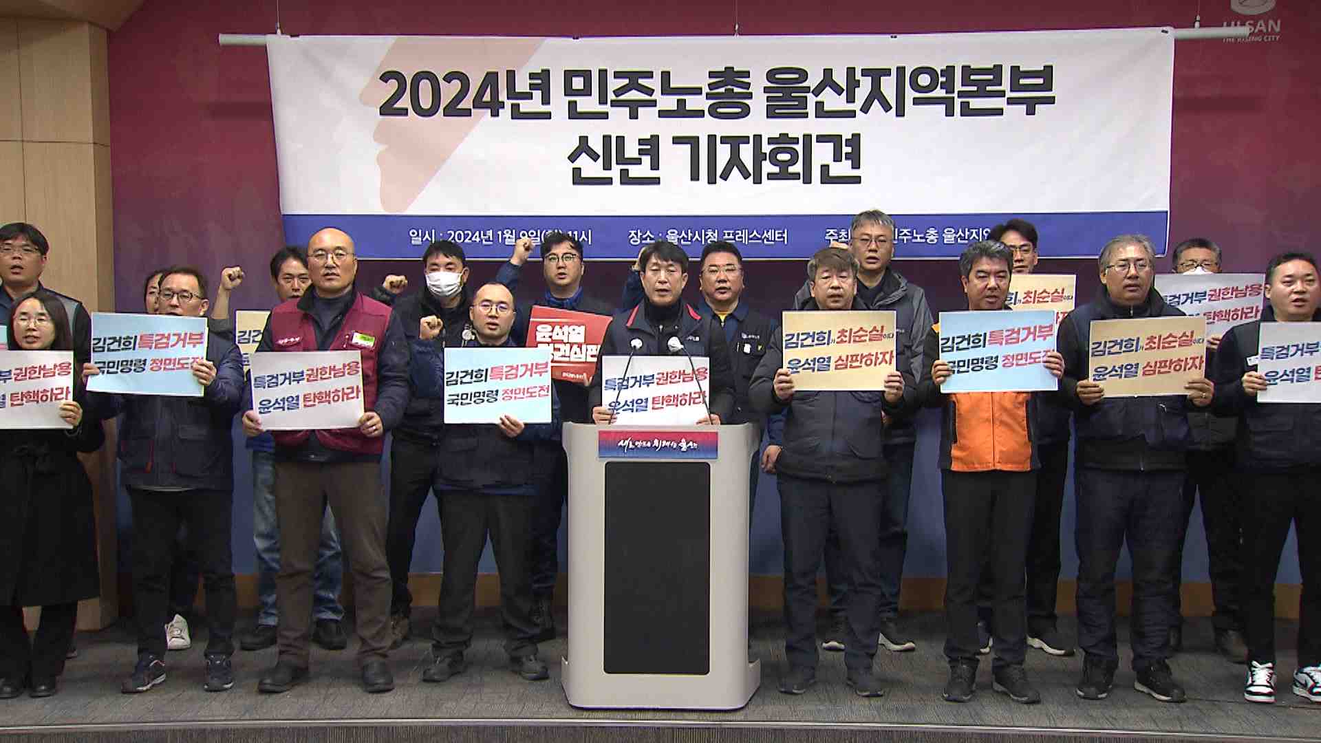 민주노총 울산본부는 오늘(1/9) 신년 기자회견을 열고, 올해를 윤석열 정권 퇴진의 해로 이끌겠다고 밝혔습니다. 민주노총은 윤석열 정부가 김건희 특검, 노란봉투법에 대한 국회 의결을 거부하는 등 권한을 남용하고 있고, 부자 감세와 노조 악마화 등으로 민생을 파탄내고 있다고 주장했습니다. 그러면서 이번 총선에서 ...