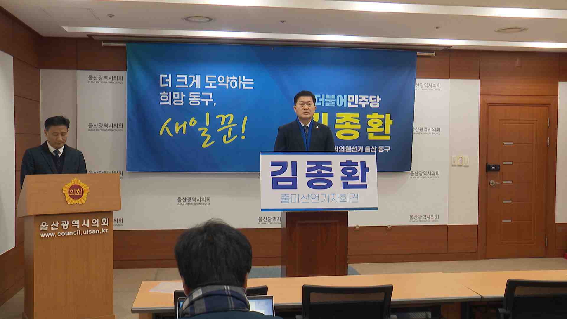 더불어민주당 김종환 전 울산시당 동구지역위원장 직무대행이 오늘(12/19) 울산시의회 프레스센터에서 기자회견을 열고 내년 총선에 동구에 출마하겠다고 밝혔습니다.김 예비후보는 국회에 입성한다면 윤석열 정권의 퇴행에 맞서 민주주의를 지켜내고 침체된 민생경제 회복과 지방소멸위기도시 울산 동구의 더 큰 발전과 도...