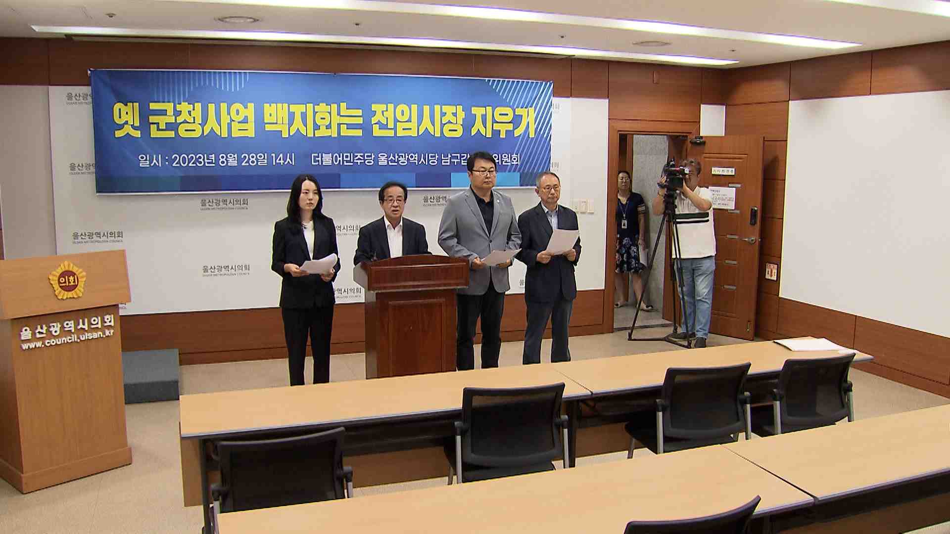 더불어민주당 울산남구갑지역위원회는 오늘(8/28) 울산시의회에서 기자회견을 갖고 옛 울주군 청사사업 백지화는 전임 시장 지우기 일뿐이라며 계획대로 재개하라고 촉구했습니다. 이들은 재벌 동상 건립비와 트램 건설비는 있고 청년 주택을 지을 돈은 없냐고 반문했습니다. 울산시는 옛 울주군청사 부지에 지으려던 복합...