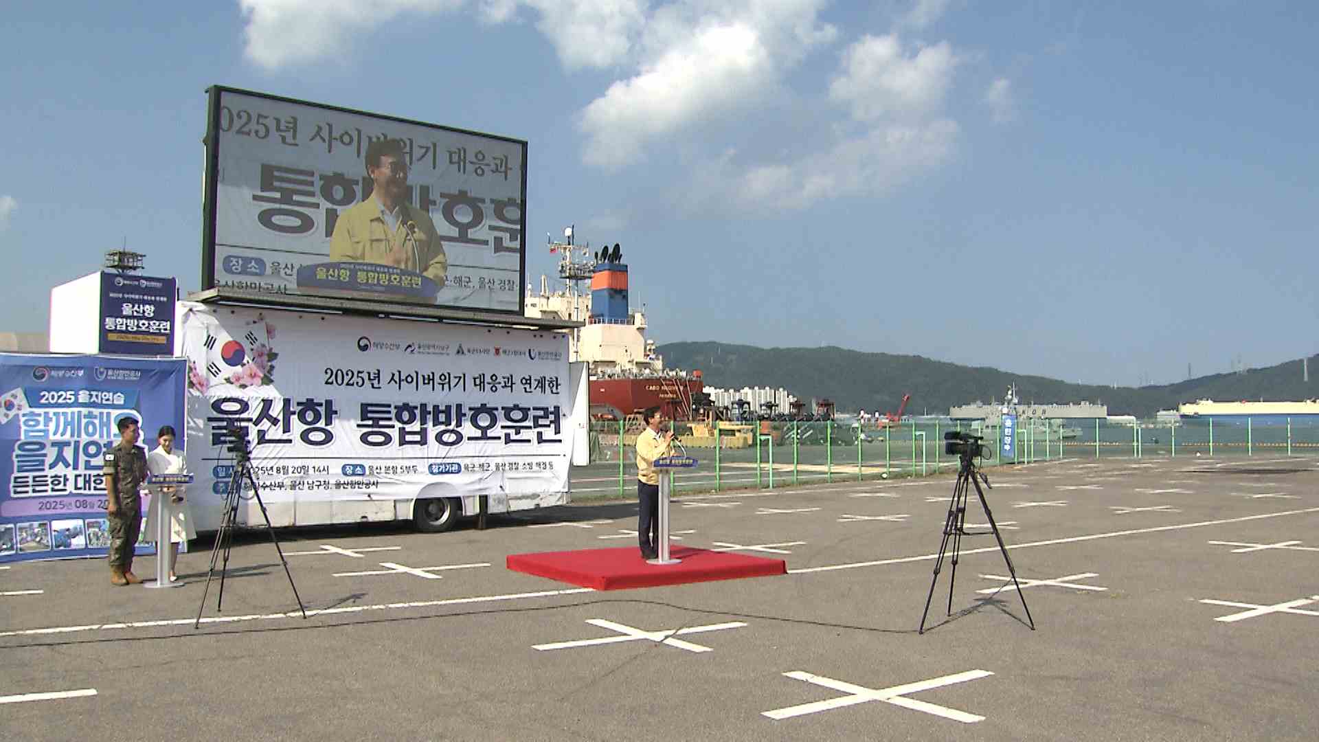 사이버 위기대응과 연계한 민·관·군 합동 울산항 통합방호훈련이 울산항 5부두에서 실시됐습니다. 해양수산부와 울산항만공사, 육군 53보병사단 등 30개 기관이 참여한 이번 훈련에서는 사이버공격 대응 훈련과 함께, 해상 고속 침투 대응과 군집드론 공격 대응 등 해상과 공중에서 발생할 수 있는 다양한 실제 상황을 가정...