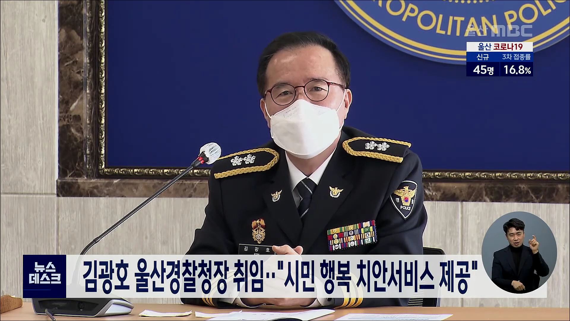 김광호 울산경찰청장이 오늘(12/17) 취임식을 갖고 시민들에게 행복을 줄 수 있는 양질의 치안서비스를 제공하겠다고 포부를 밝혔습니다. 김 청장은 불법과 불의에는 엄정하게 대응하되, 시민을 대할 때는 권위의식을 내려놓고 다가가는 행복 치안 매니저가 되자고 강조했습니다.