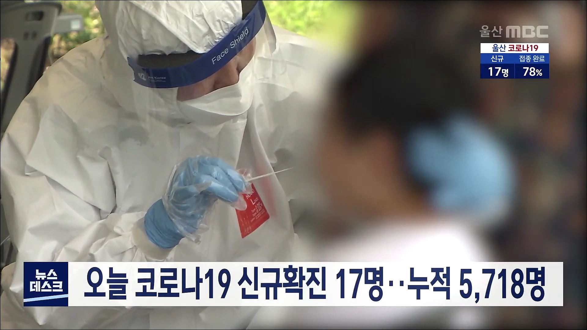 오늘(12/4) 울산에서는 코로나19 신규 확진자가 17명 발생했습니다. 6명은 울산지역 기존 확진자를 접촉했다 감염됐으며, 4명은 서울시와 경기도 고양시, 안성시 등 타 지역 확진자를 접촉했던 것으로 파악됐습니다. 나머지 7명은 감염 경로를 조사중입니다. 현재까지 울산지역의 코로나19 누적 확진자는 모두 5천 718명입...