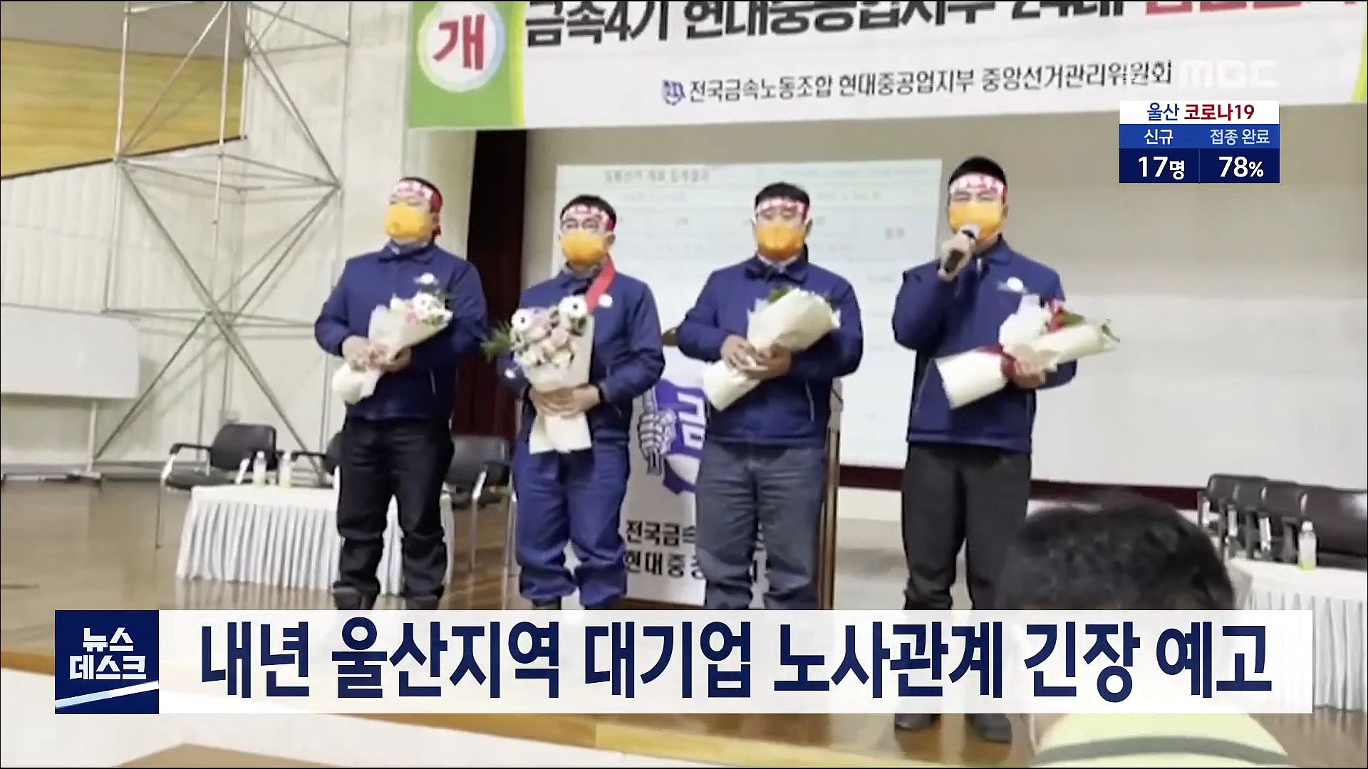 현대중공업과 현대자동차 노조 새 집행부에 모두 강성 성향의 후보들이 당선됐습니다. 현대중공업은 지난 2일 결선투표에서 강성 성향의 정병천 후보가 선출되면서 지난 2013년 이후 5대 연속으로 강성 성향 후보가 뽑혔습니다. 또 지난 2일 열린 현대자동차 노조 지부장 선거에서도 강성의 안현호 후보와 권호일 후보가 나...