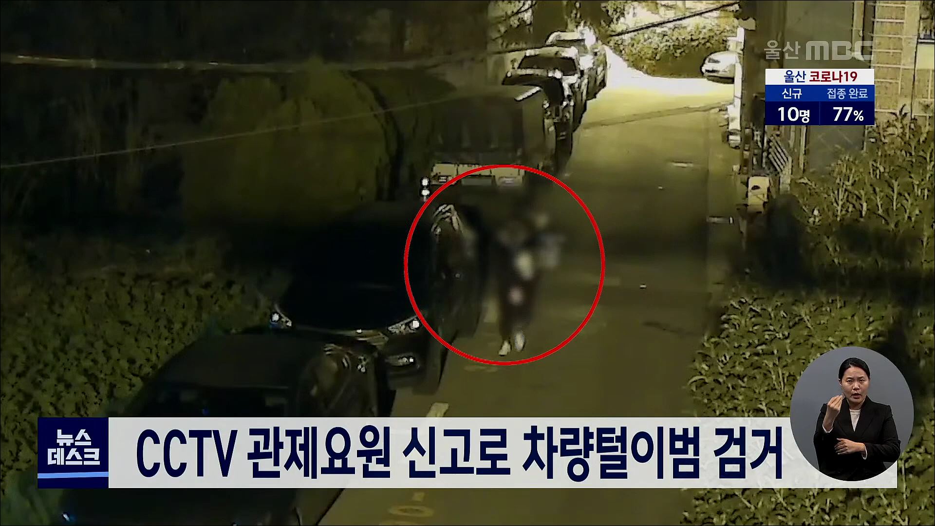 새벽시간 골목길에 주차된 차량에서 물건을 훔치려던 남성이 cctv 관제센터 관제요원에게 적발돼 검거됐습니다. 중구 cctv 통합관제센터는 어제(11/25) 새벽 2시 40분쯤 한 남성이 차량 운전석 문을 잡아당기는 모습을 포착해 112에 신고했고 용의자는 인근 편의점에서 검거됐습니다.