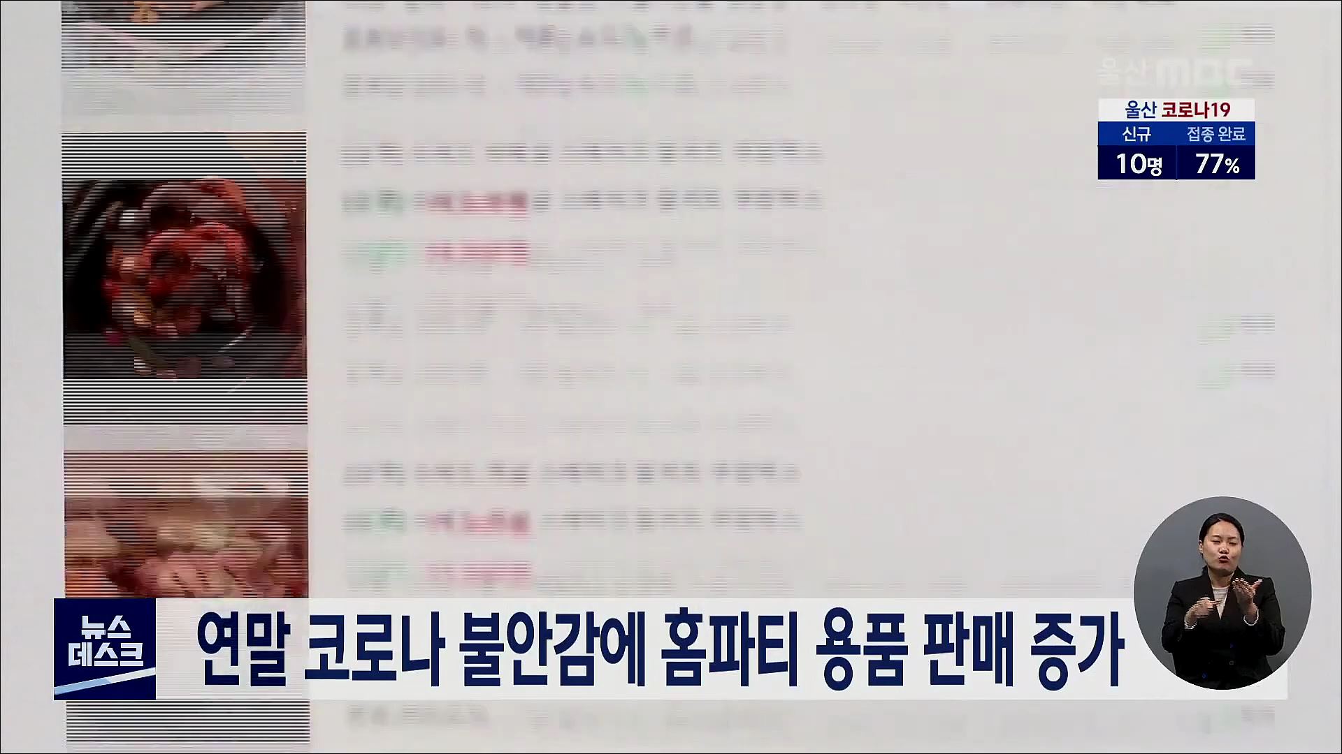단계적 일상회복에도 코로나 확진자 수가 증가세를 보이면서 홈파티 용품 판매가 증가하고 있습니다. 울산 유통업계에 따르면 간단하게 조리해먹을 수 있는 밀키트 판매가 전년 동월 대비 90% 증가했고 와인과 홈패션 등 파티 용품 판매가 전년 동월 대비 5~20% 증가한 것으로 나타났습니다.