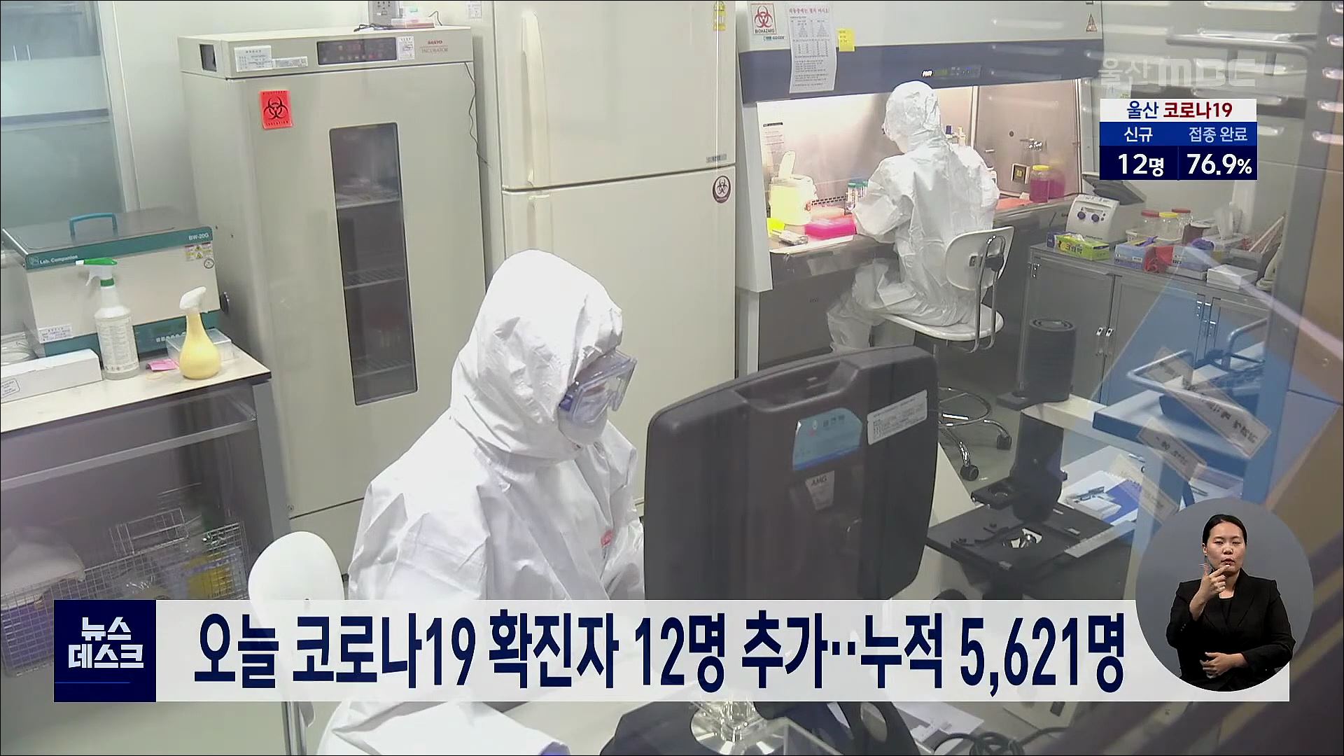 오늘(11/25) 울산에서는 코로나19 확진자 12명이 추가로 발생해 누적 5621명을 기록했습니다. 이 중 1명은 앞서 집단·연쇄 감염이 확인된 동구 한 기업체와 관련해 추가 확진됐습니다. 또 3명은 서울과 부산 확진자와 접촉해 감염된 것으로 나타났습니다.