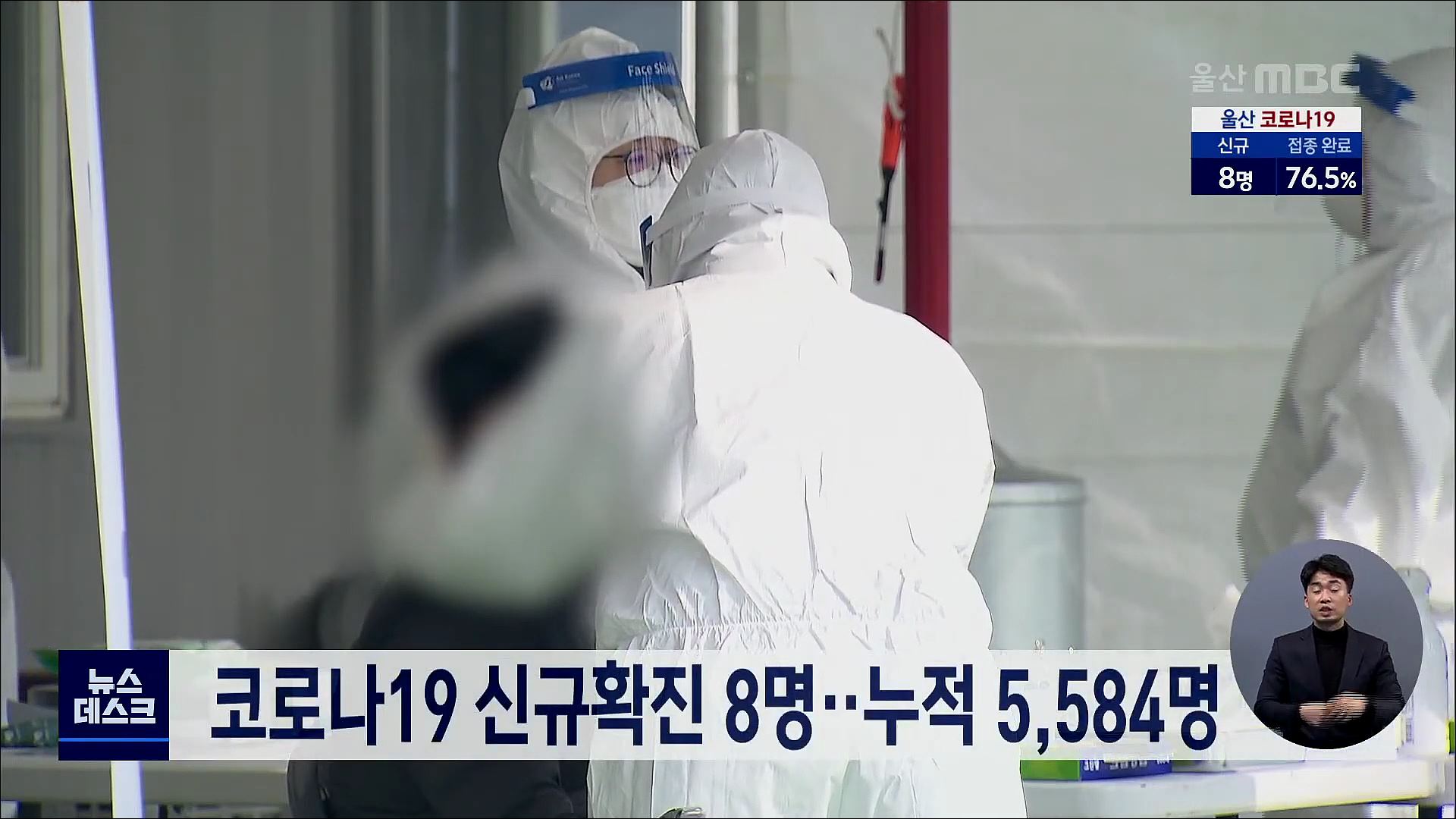 오늘(11/22) 울산에서는 코로나19 신규 확진자가 8명 발생했습니다. 이들 중 2명은 경남 창원과 경기도 광주시 등 타지역 확진자와 접촉해 감염됐습니다. 현재까지 울산의 코로나19 누적 확진자는 모두 5천 584명입니다.