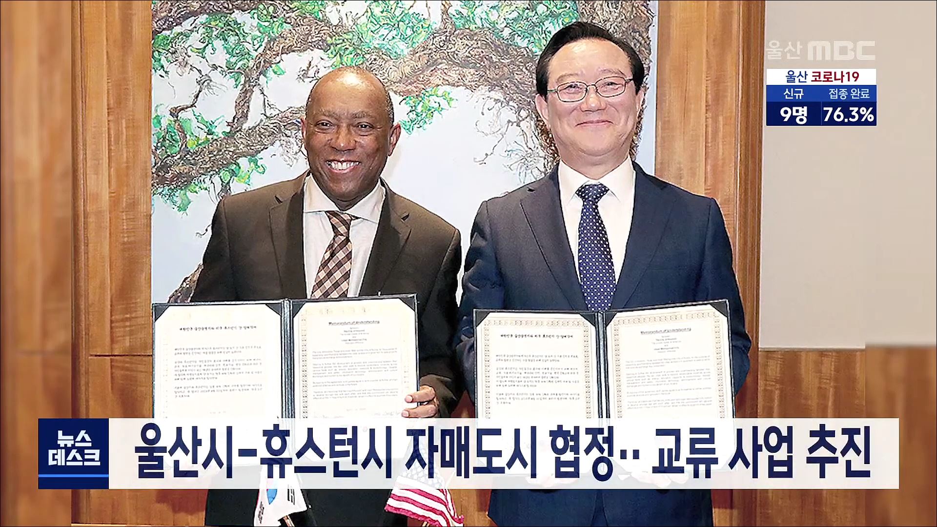 미국을 방문중인 송철호 시장은 오늘(11/20) 실베스타 터너 휴스턴 시장과 자매결연 조인식을 갖고 협정서에 서명했습니다. 울산시와 휴스턴시는 지난 2019년 업무 협약을 체결한 뒤 이번에 자매도시 협정을 맺었으며 양 도시는 앞으로 경제와 통상 등 다양한 분야에서 협력사업을 추진합니다. 휴스턴은 미국에서 4번째로 ...