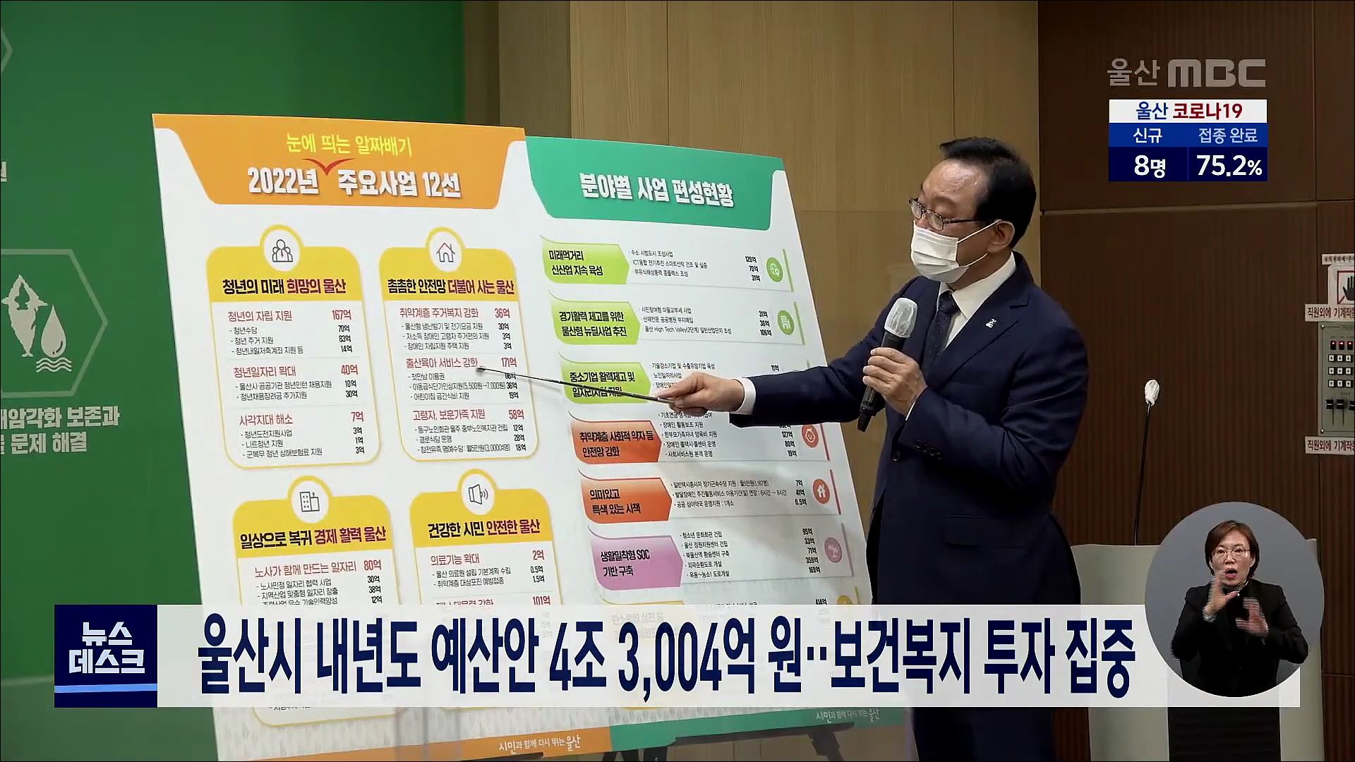 울산시 내년도 예산안 4조 3,004억 원.. 보건복지 투자 집중