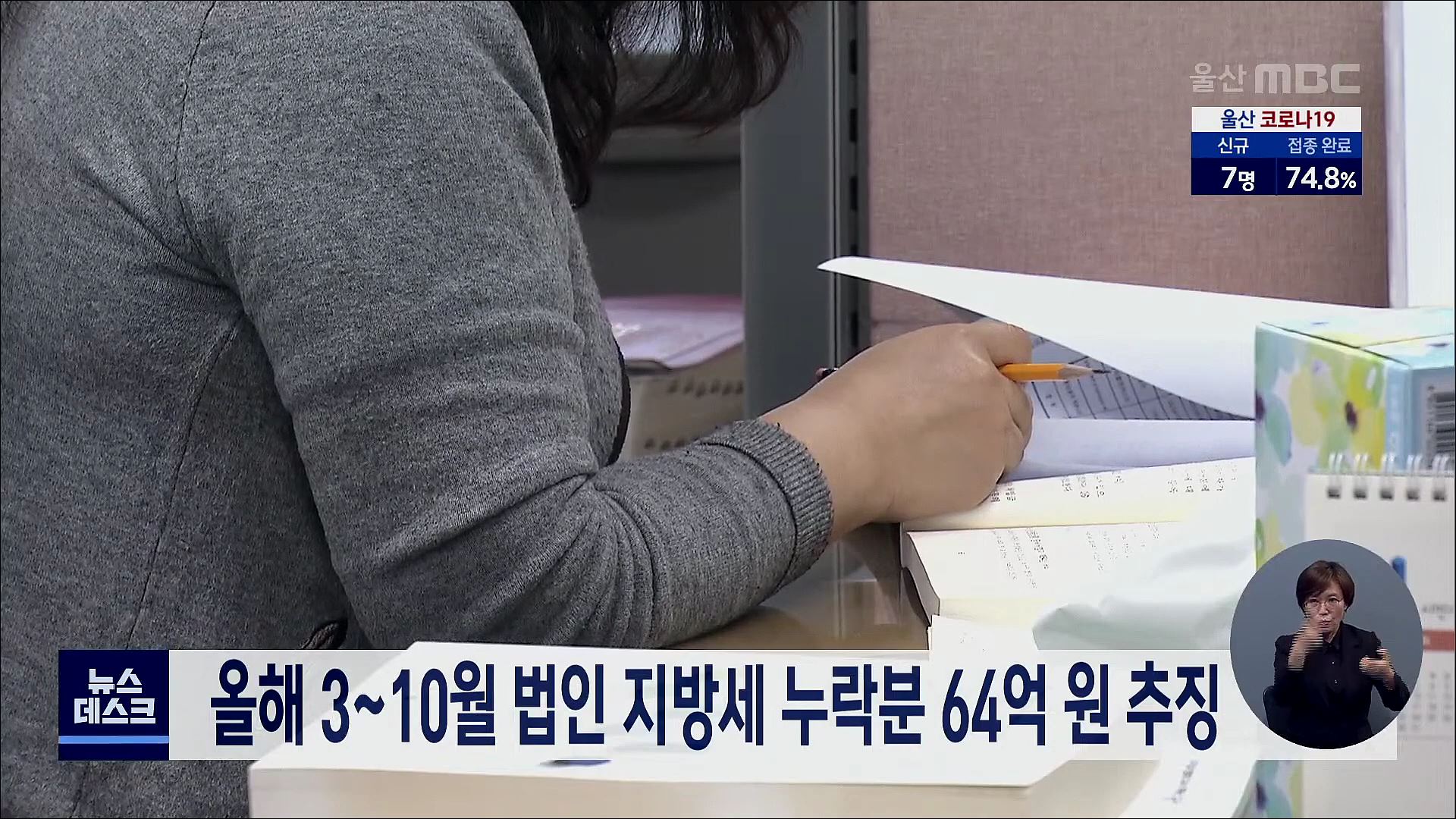울산시는 올해 3월부터 10월까지 지방세 세무조사를 벌인 결과 64억 6천 800만 원을 추징했다고 밝혔습니다. 이번 조사는 법인 409곳을 대상으로 진행됐으며, 세금을 감면받은 부동산을 목적대로 쓰지 않거나, 부동산 취득 간접비용에 대한 신고를 하지 않는 경우 등이 적발됐습니다.