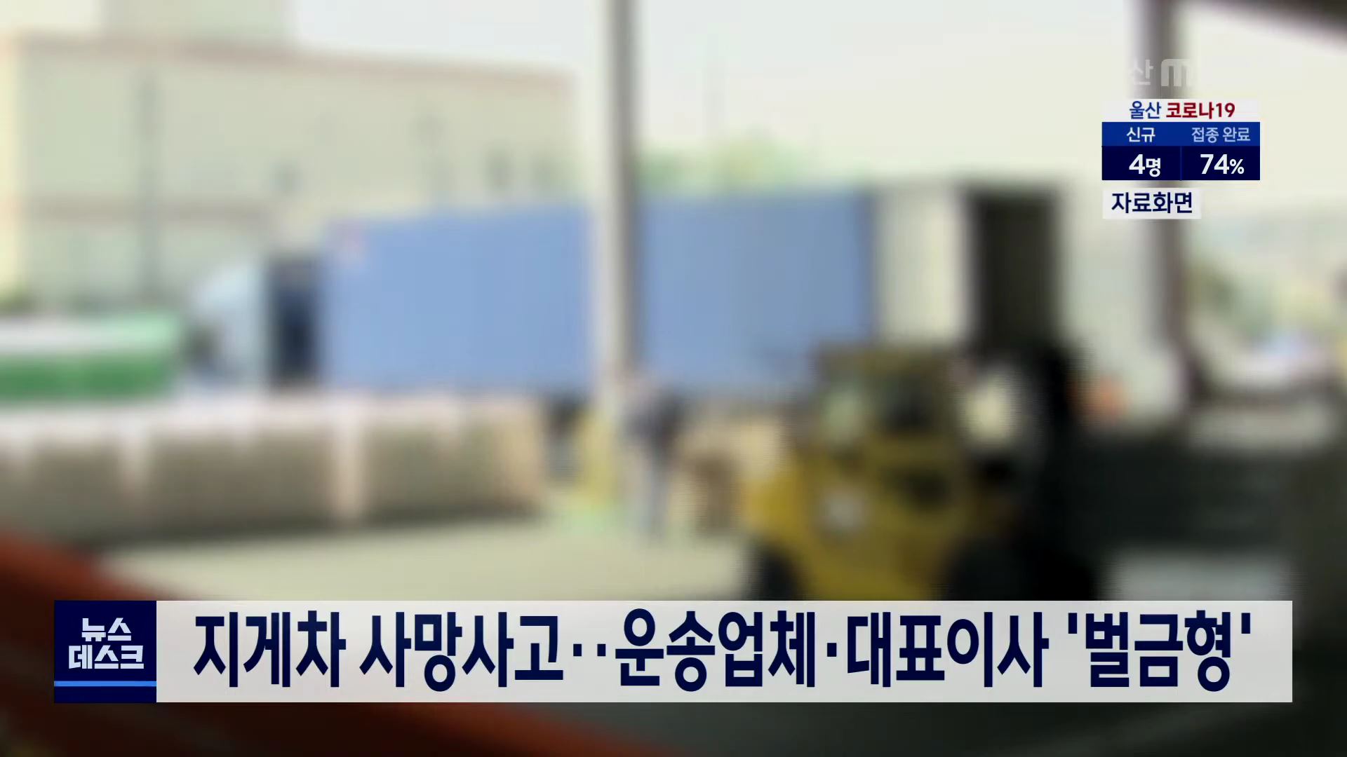 울산지법 형사3단독 김용희 판사는 노동자가 지게차에 끼여 숨진 사고와 관련해 산업안전보건 의무를 위반한 혐의로 기소된 운송업체와 대표이사 A씨에게 각각 벌금 2천만 원을 선고했습니다. A씨는 지난 2018년 노동자 B씨가 지게차에 끼이는 사고가 발생하자, 작업장에 안전통로를 설치하지 않는 등 안전조치를 다하지 않...