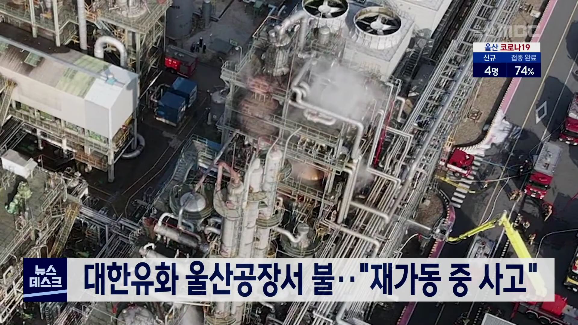 오늘(11/6) 오전 8시 53분쯤 울산 남구 부곡동 대한유화 울산공장의 '헥산' 정제공장에서 불이 나 40여분만에 꺼졌습니다. 헥산은 도로나 희석제 등에 사용되는 원료로 인명 피해와 유해화학물질 유출은 없었던 것으로 경찰과 소방당국은 보고 있습니다. 공장 측은 전날 오후 공장을 멈춘 뒤 오늘 재가동을 준비하는 과정에...