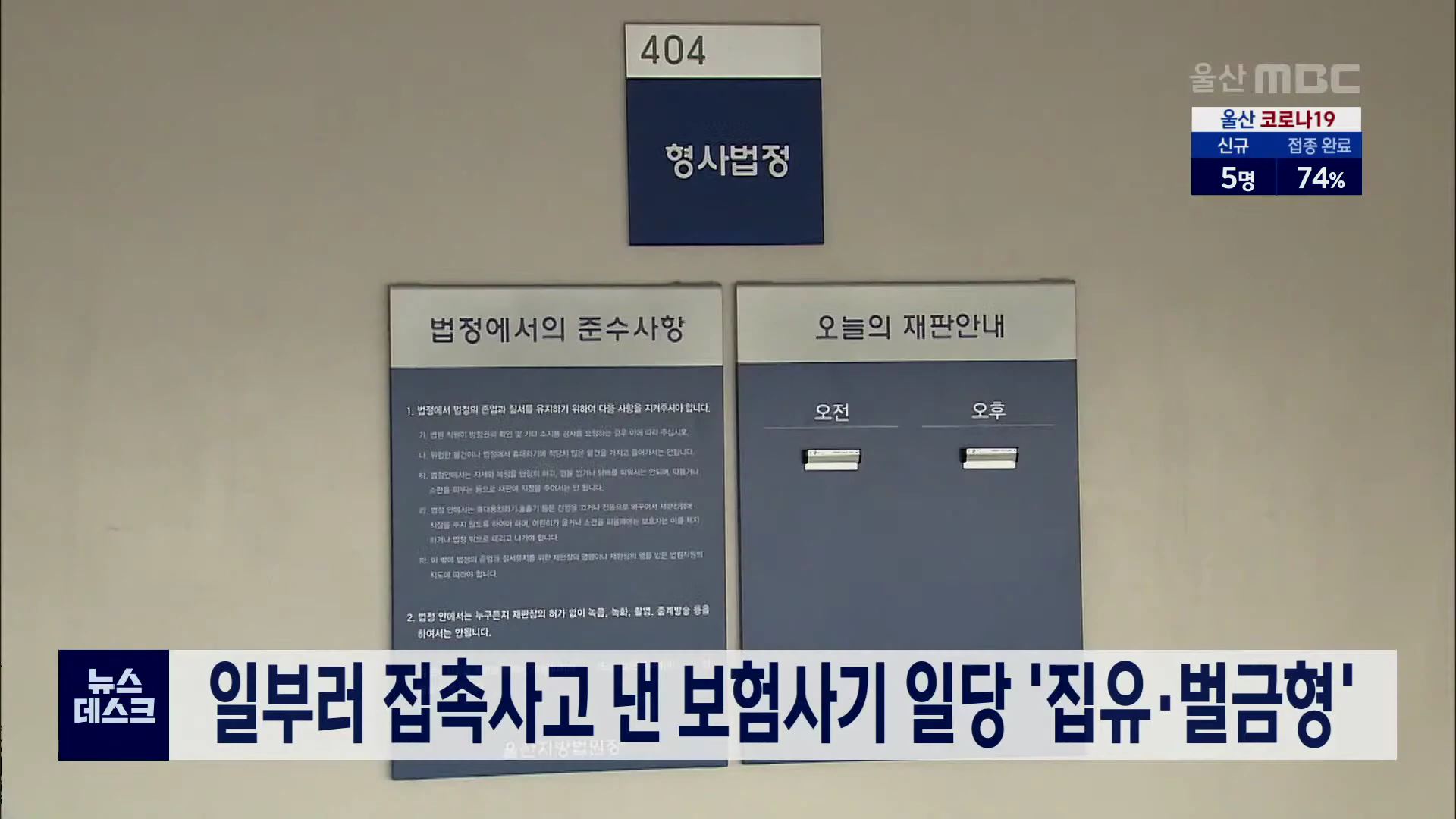 울산지법 형사5단독 김정철 판사는 일부러 접촉사고를 내고 상습적으로 합의금을 받아챙긴 혐의로 기소된 보험사기 일당 5명에게 징역 1년 2개월~6개월에 집행유예 2~3년, 벌금 700만 원 등을 선고했습니다. 이들은 지난 2019년 3월 남구 공업탑로터리에서 차선을 변경하는 승용차를 들이받아 상대방 보험사로부터 650만 원...