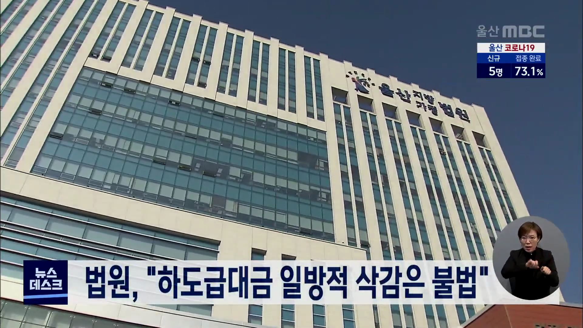 울산지법 형사4단독 박주연 판사는 일방적으로 하도급 단가를 낮춘 혐의로 기소된 원청업체 대표이사 A씨에게 벌금 1억 원을 선고했습니다. A씨는 지난 2015년 말 울주군에 위치한 자신의 사무실에서 외주공사 전체 예산을 7% 낮춘다며 6개 하도급 업체에 통보하고, 5억4천만 원 상당이 줄어든 71억여 원을 하도급 대금으로...