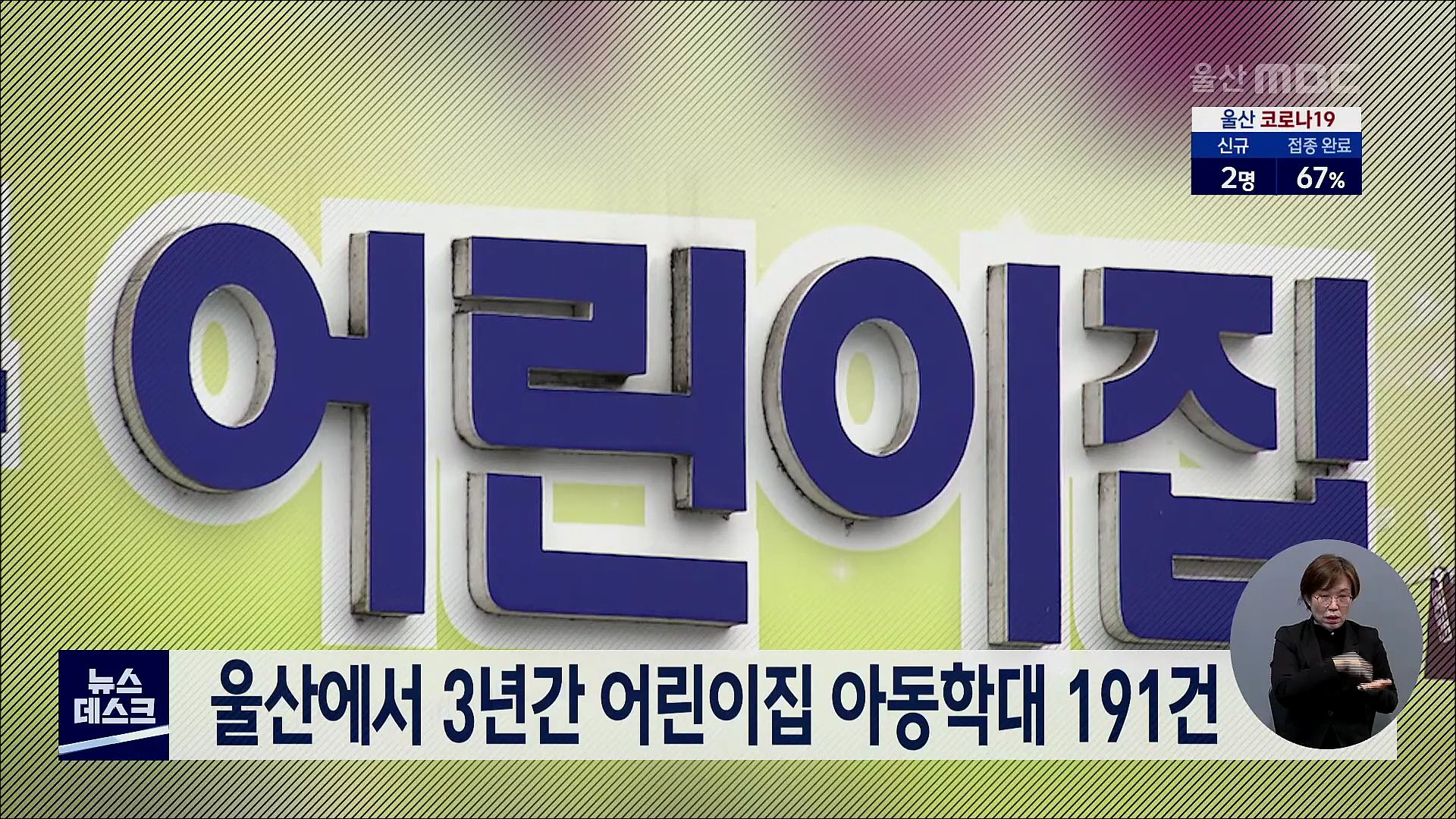 울산지역 어린이집에서 최근 3년간 보육교직원에 의한 아동학대가 2백 건 가까이 발생한 것으로 나타났습니다. 국회 교육위원회 강득구 의원이 보건복지부에서 받은 자료를 보면, 지난 2018년 이후 3년간 울산에서는 보육교직원에 의해 아동학대가 191건 발생했습니다. 이는 전국에서 경기와 경북 등에 이어 5번째로 많은 ...