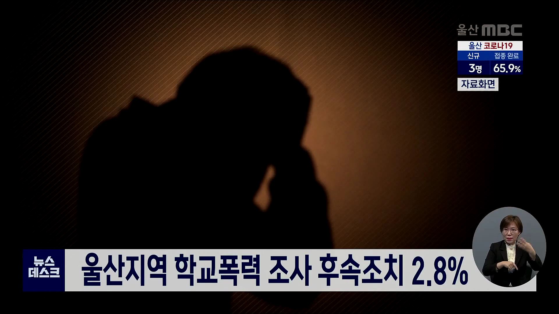 울산지역 초·중·고 학생을 대상으로 올해 실시된 학교폭력 실태조사에서 후속조치가 이뤄진 사례가 2.8%에 그친 것으로 나타났습니다. 더불어민주당 안민석 의원이 받은 교육부 학교폭력 실태조사에 따르면 학교폭력 피해 설문에 참여한 울산지역 초중고 학생 가운데 472명이 응답한 것으로 나타났습니다. 그러나 응답 내용...
