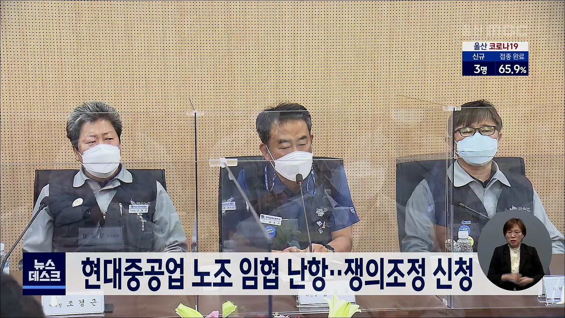 현대중공업의 올해 임금협상이 난항을 겪으면서 노동조합이 중앙노동위원회에 쟁의 조정을 신청한다고 밝혔습니다. 현대중공업 노사는 지난 8월 30일 상견례를 한 뒤 12차례 교섭에도 별다른 성과를 내지 못하고 있습니다. 노조는 기본급 12만304원 인상, 성과금 산출 기준 마련 등을 요구하고 있으며 회사는 아직 협상안을...