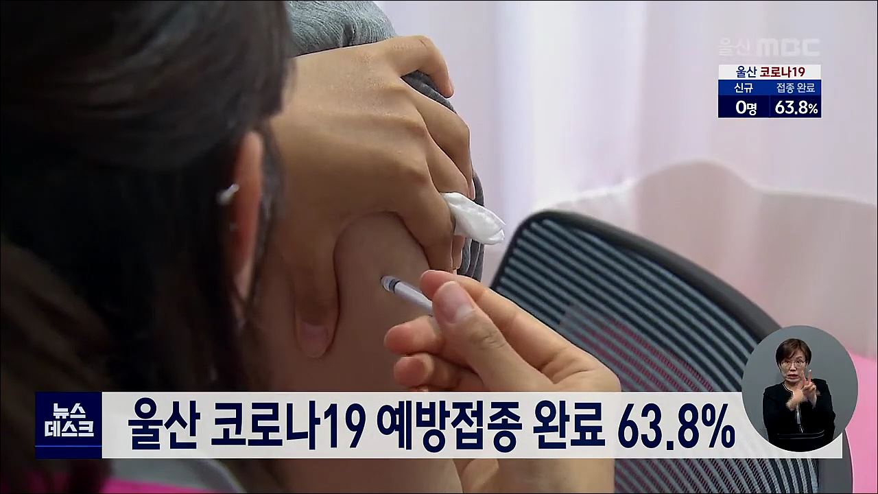 오늘 울산에서는 코로나19 확진환자가 추가로 나오지 않은 가운데, 오늘(10/18) 오후 5시 기준 울산의 코로나19 1차 예방접종자는 인구 대비 76.8%를 기록했습니다. 예방 접종을 모두 마친 울산 시민은 72만1천여 명으로 인구 대비 63.8%를 차지한 것으로 나타났습니다.