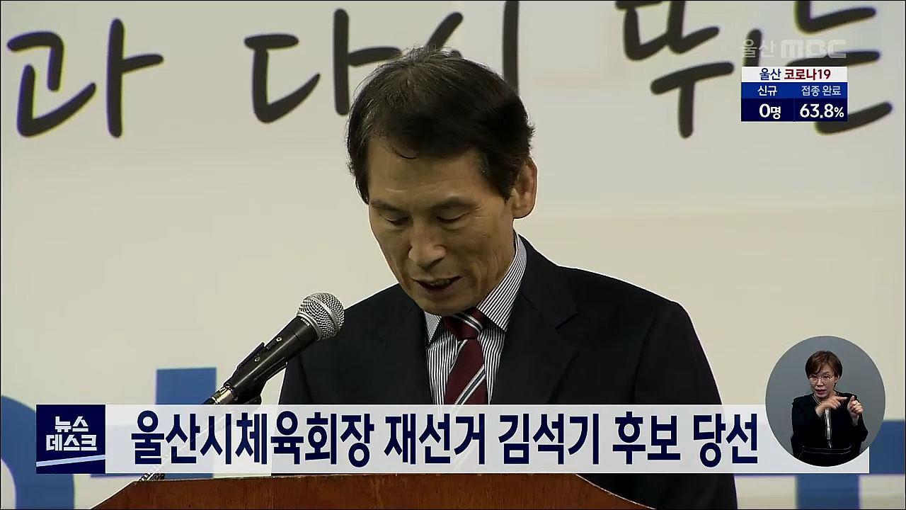 오늘(10/18) 진행된 울산시체육회장 재선거에서 김석기 전 울산시 보디빌딩협회장이 제4회 울산시체육회장에 당선됐습니다. 전체 선거인 422명 가운데 391명이 참여한 이번 선거에서 김석기 후보는 195표를 득표해 148표를 받은 이진용 후보를 꺾고 당선에 성공했습니다. 이번에 당선된 김석기 회장은 내년 울산 전국체전을...