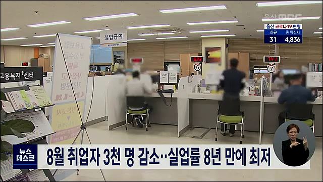 8월 취업자 3천 명 감소..실업률 8년 만에 최저