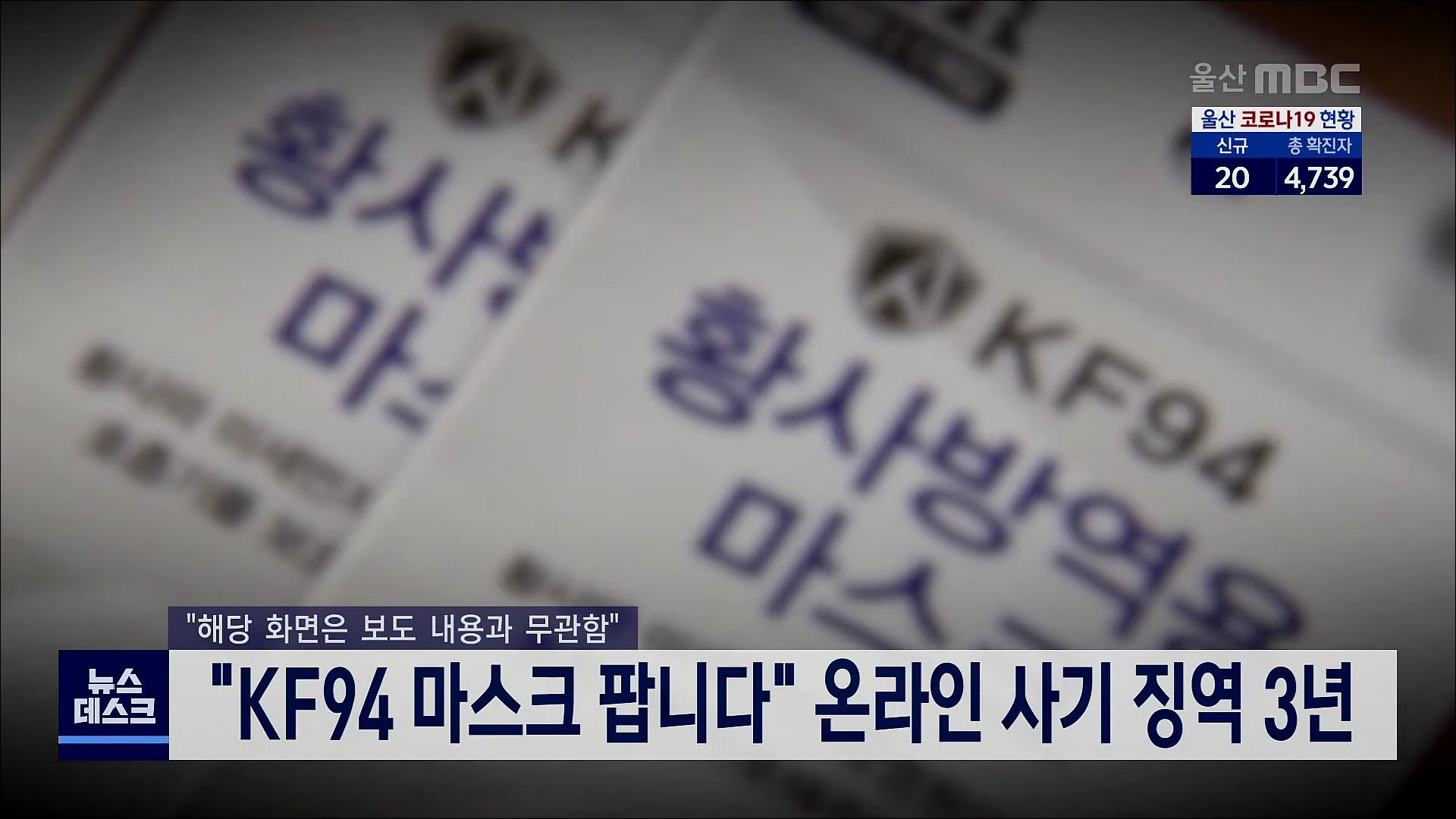 울산지방법원 김정철 판사는 KF94 마스크를 대량 판매한다며 수천만 원을 가로챈 혐의로 기소된 20대 A씨에게 징역 3년을 선고했습니다. A씨는 지난해 3월부터 온라인 사이트에 마스크를 판다는 글을 올린 뒤 수십 차례에 걸쳐 4천600여만 원을 받아 가로챈 혐의로 혐의로 재판에 넘겨졌습니다.//