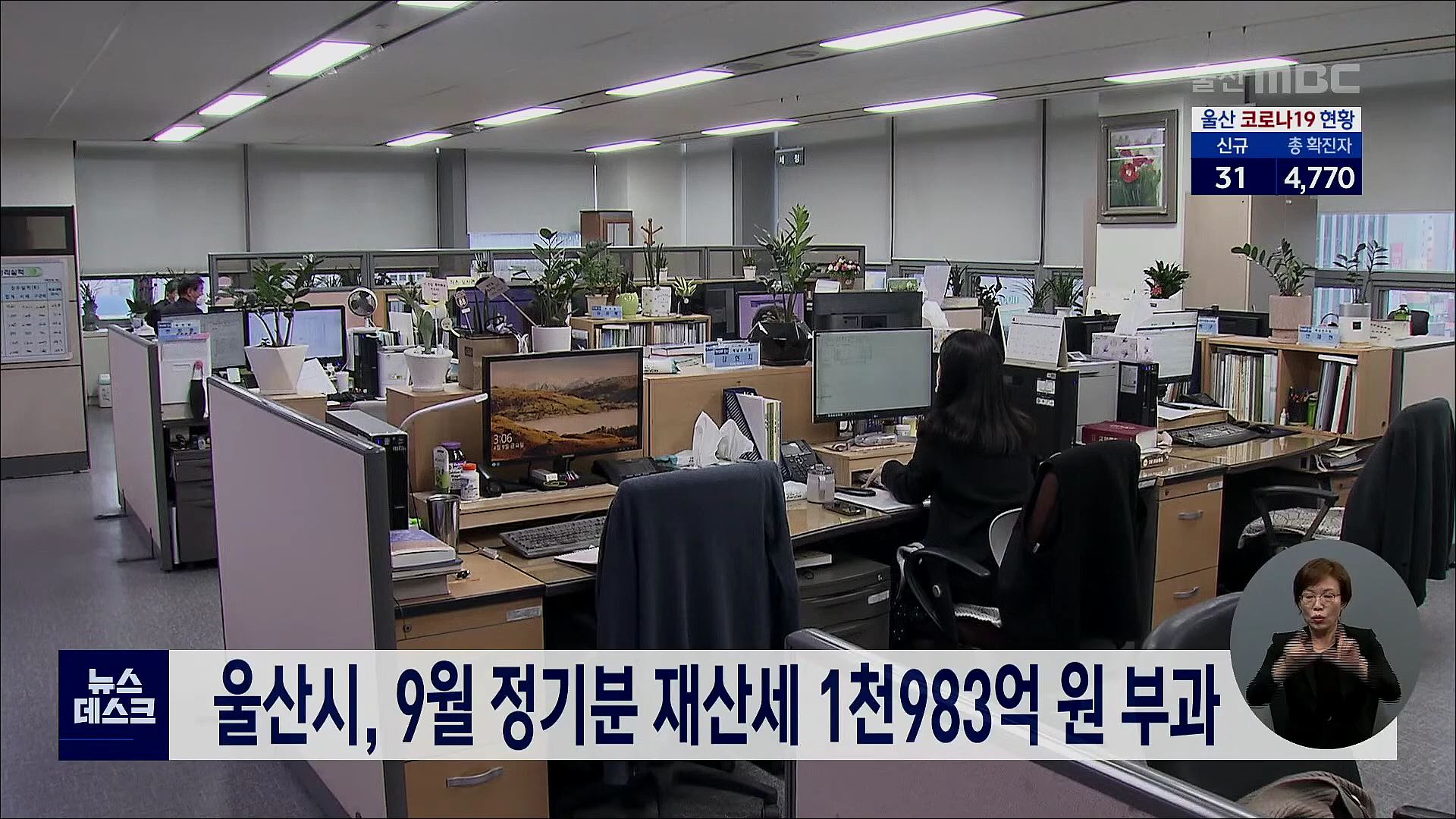9월 정기분 재산세가 지난해보다 117억원 증가한 1천983억원이 부과됐습니다. 구·군별로는 중구 216억원, 남구 650억원, 동구 142억원, 북구 365억원, 울주군 610억원입니다. 울산시는 주택분 재산세가 올해부터 적용되는 재산세율 특례에 따라 9.3%가 감소했지만 올해 토지분 재산세가 개별공시지가 상승으로 지난해보다 1...