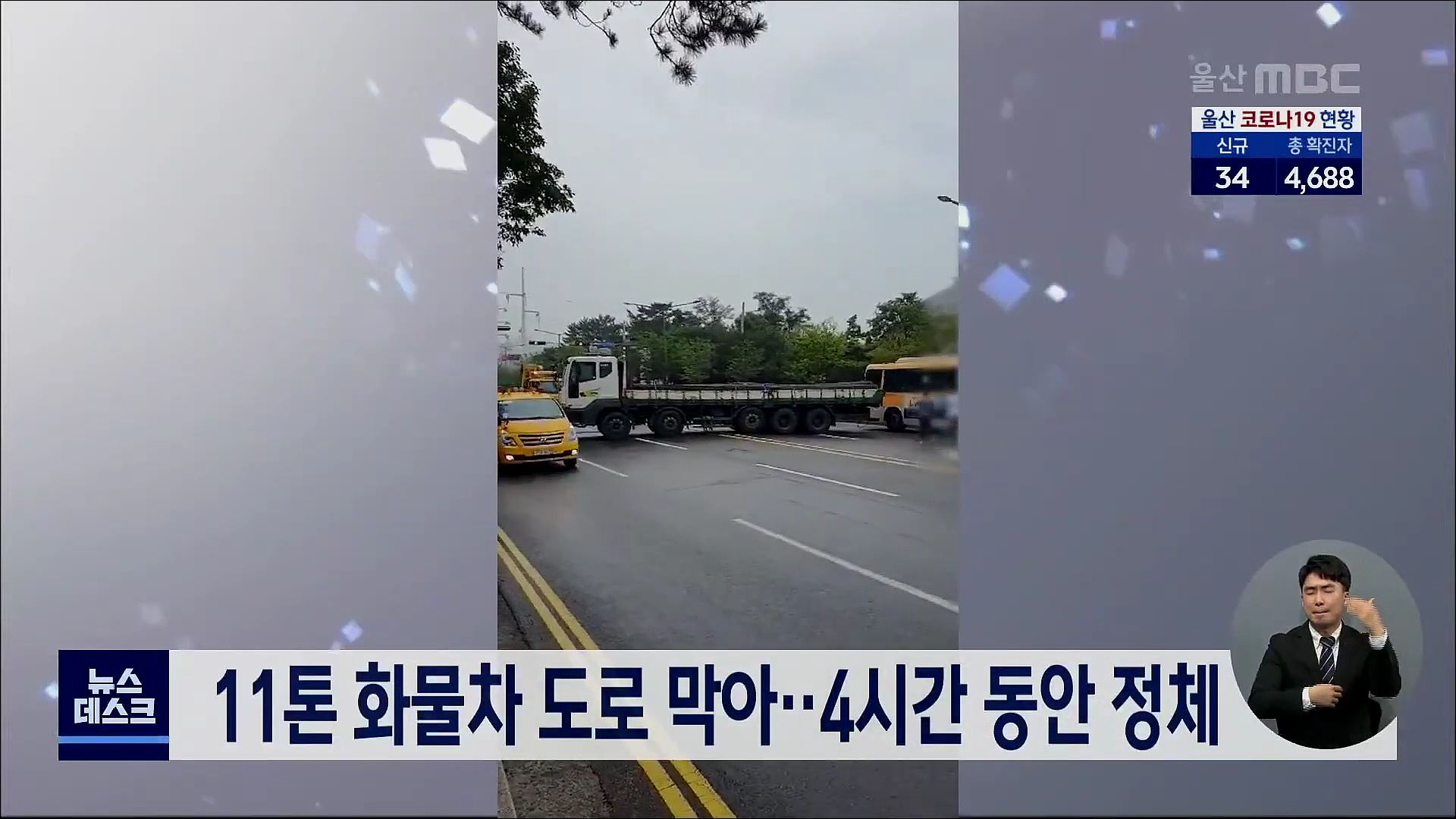 11톤 화물차 도로 막아..4시간 동안 정체