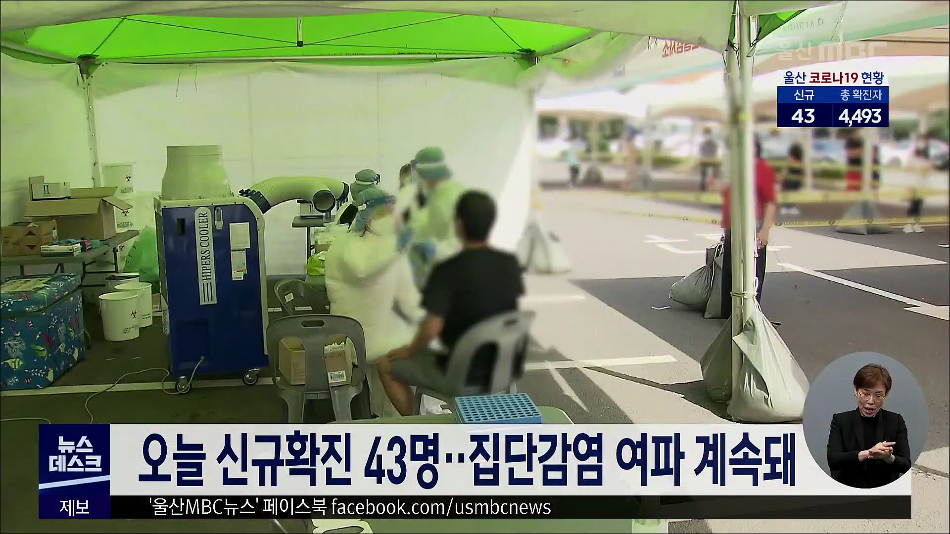 오늘(9/6) 울산에서는 코로나19 신규 확진자가 43명 발생했습니다. 중구 식당과 남구 직장인모임 등 집단감염 관련 확진자가 10명 늘었고, 18명은 기존 확진자를 접촉했다 감염됐습니다. 2명은 해외 입국자이고 나머지 13명은 감염 경로를 조사중입니다. 현재까지 울산지역의 코로나19 누적 확진자는 모두 4천 493명입니다....