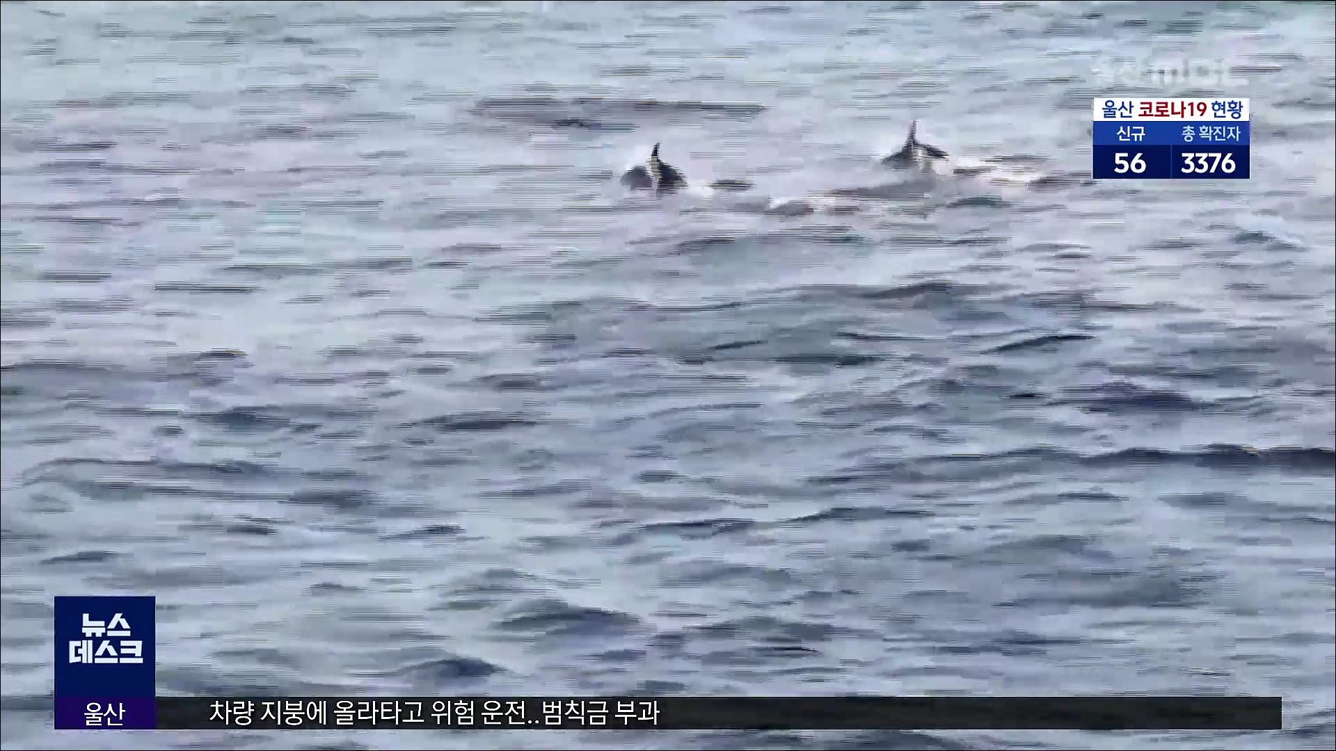 오늘(8/7) 오후 3시 45분쯤 울산시 남구 장생포항 남동쪽 13km 해상에서 참돌고래떼 1천여 마리가 발견됐습니다. 이달 들어 대규모 고래떼를 연속해서 목격한 장생포 고래바다여행선은 이번 참돌고래떼 발견이 올해 운항 중 8번째라고 밝혔습니다.//
