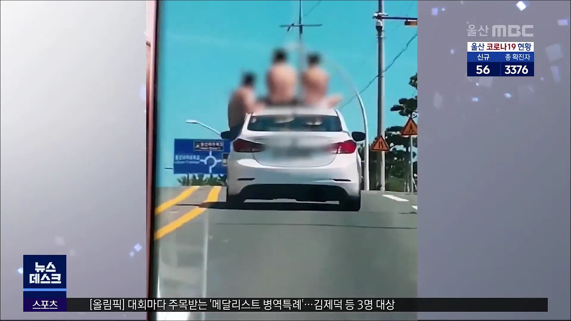 오늘(8/7) 오전 10시 40분쯤 울산 동구 일산해수욕장 인근 도로에서 20대 남성 3명이 상의를 탈의한 채 달리는 차량 지붕에 올라타거나 창문에 걸터앉아 이를 목격한 주민들의 신고가 빗발쳤습니다. 경찰은 운전자 음주 측정 결과 수치가 나오지 않았고 무면허 상태도 아니었다며, 동승자 보호 등의 안전 조치를 위반한 것...