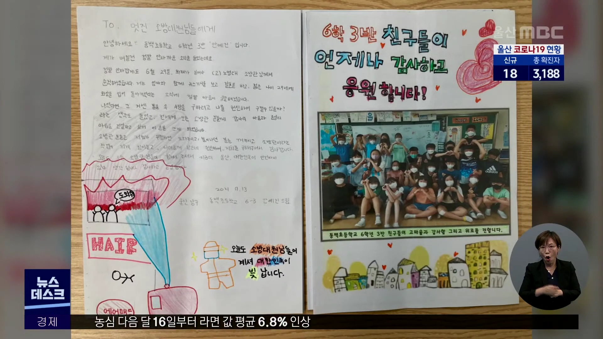 초등학생들이 소방관들에 대한 감사의 마음을 담은 편지를 책자로 제작해 울산 중부소방서에 전달해왔습니다. 중부소방서는 남구 동백초등학교 학생 20여명이 편지와 그림, 단체 사진 등을 담은 책자를 우편으로 보내왔다고 밝혔습니다. 편지에는 최근 발생한 성남동 화재로 인한 소방관들의 희생과 헌신에 감사하다며 존경...
