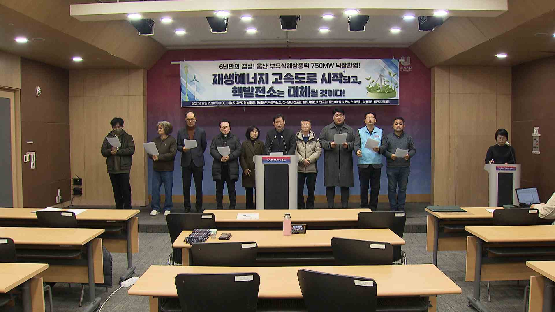 울산에너지전환네트워크는 오늘(12/26) 기자회견을 열고, 부유식해상풍력 발전이 본궤도에 오르게 된 것을 환영한다고 밝혔습니다. 이들은 지난 20일 에퀴노르사의 750 메가와트 부유식해상풍력 발전단지가 산자부의 장기 고정가격 입찰에서 부유식해상풍력으로는 처음으로 낙찰됐다며, 이는 사업 시작 6년만의 쾌거이자 재...