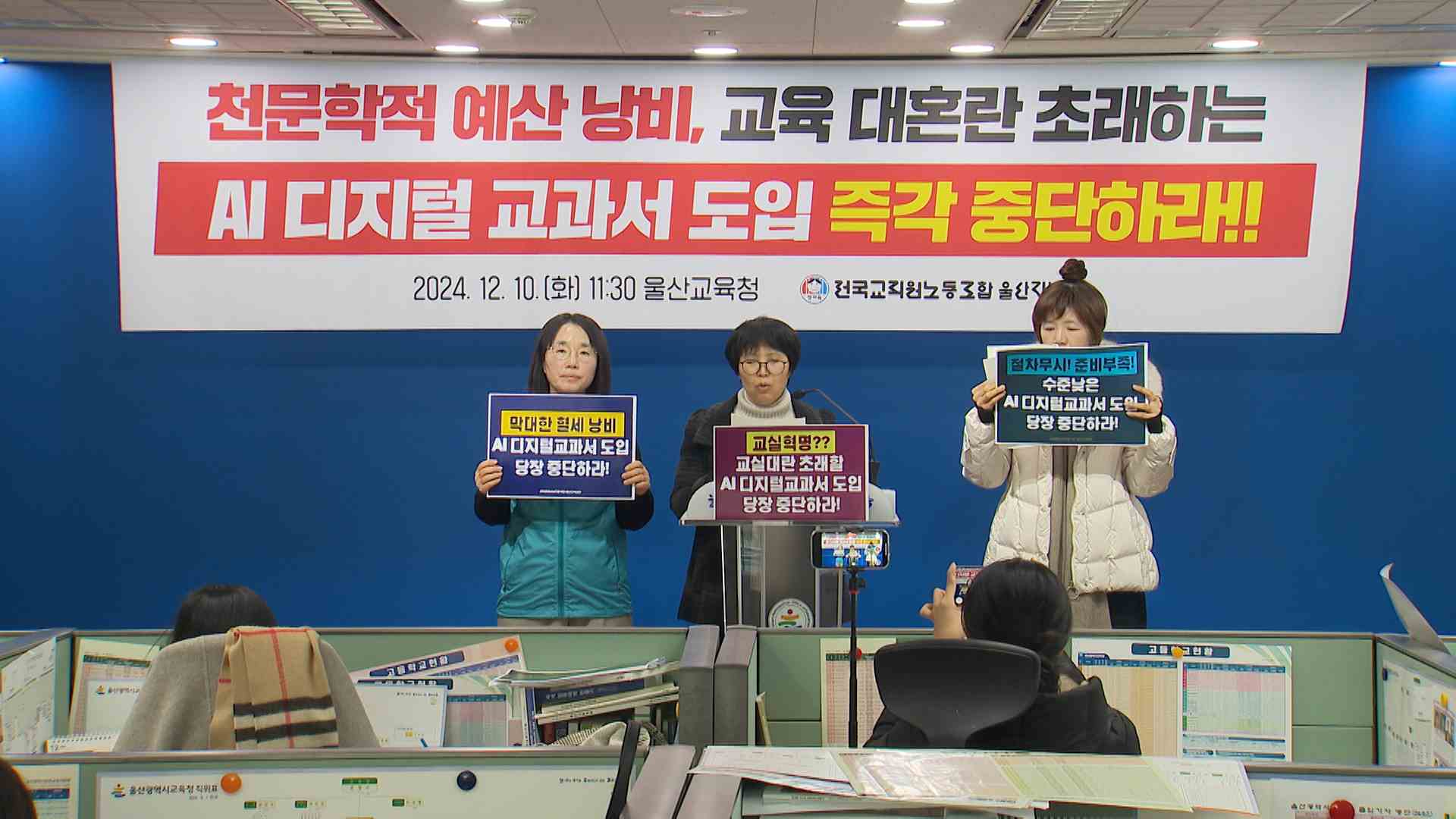전국교직원노동조합 울산지부가 인공지능, AI 디지털교과서 도입 중단을 요구했습니다. 전교조 울산지부는 AI 교과서가 학생 발달과 성장, 교육 활동에 부정적 영향을 줄 것이라며 천문학적 예산 낭비와 교육 대혼란을 초래할 수 있다고 주장했습니다. 전교조는 교육부와 교육청이 AI 교가서 도입을 계속 추진한다면 교사와...